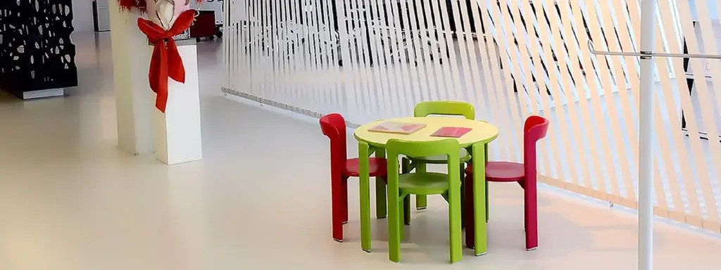 This is the children table version of the famous Rey chair that was designed in 1971.Designed by Bruno Rey, the Rey chair is famed internationally for its elegance and style. Like the original, the Junior edition table is constructed with Dietiker’s patented screwless wood-to-metal connection.The solid execution and rounded edges are perfectly suited for children.The table is made with care from solid Beech wood, in Maple Beech color, with die-cast aluminum consoles and glides. The legs are of solid wood, surface in HPL.ANSI/BIFMA certified.- Solid wood beech- Laminate surface ( washable markers can be used on the laminate top)- Round edge for children safety- Tabletop suited for washable marker drawings- Patented screwless wood metal connection- Fits 4 Rey Jr chairs- Eco friendly water based paints- FSC certified (sustainable forestry)
