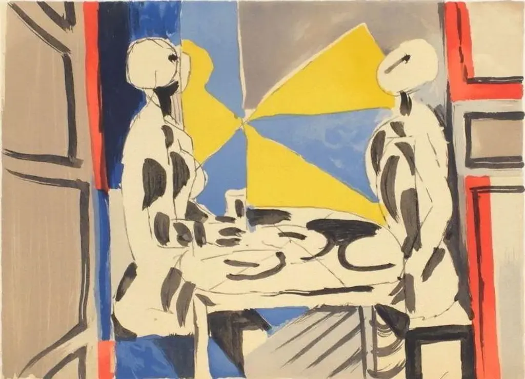 1980s "Two Characters At The Table" Lithograph By Jacques Lagrange