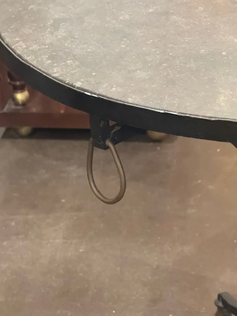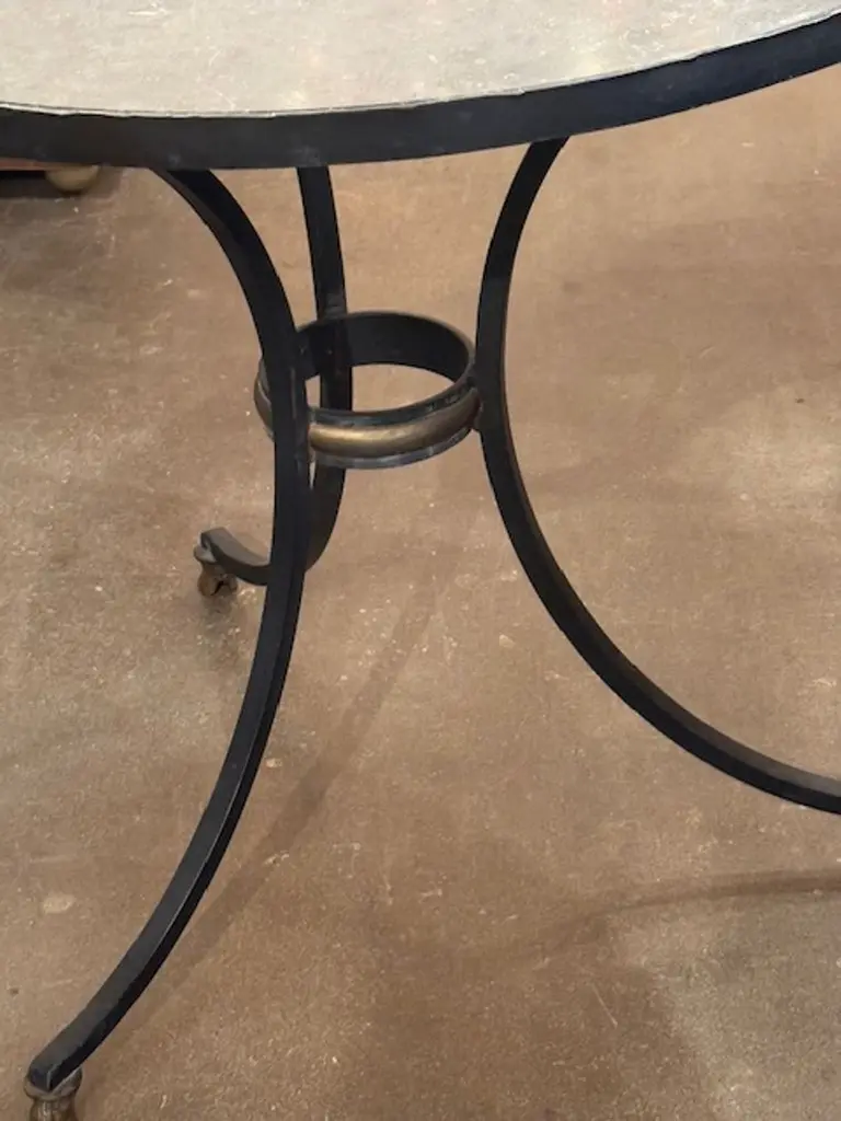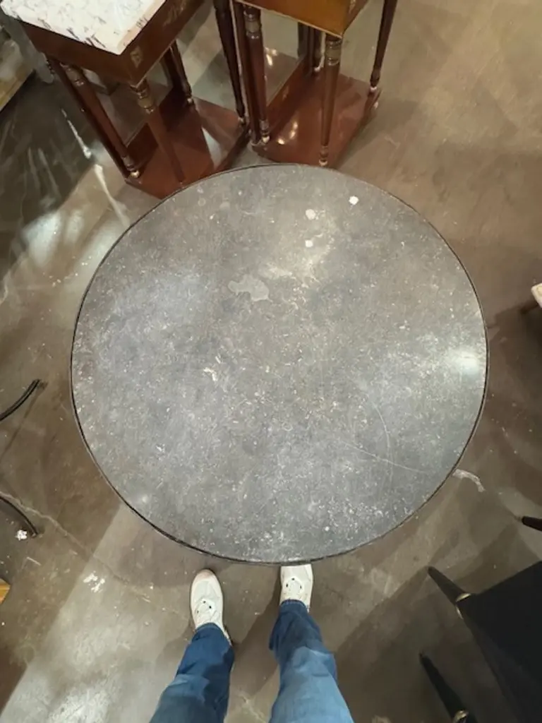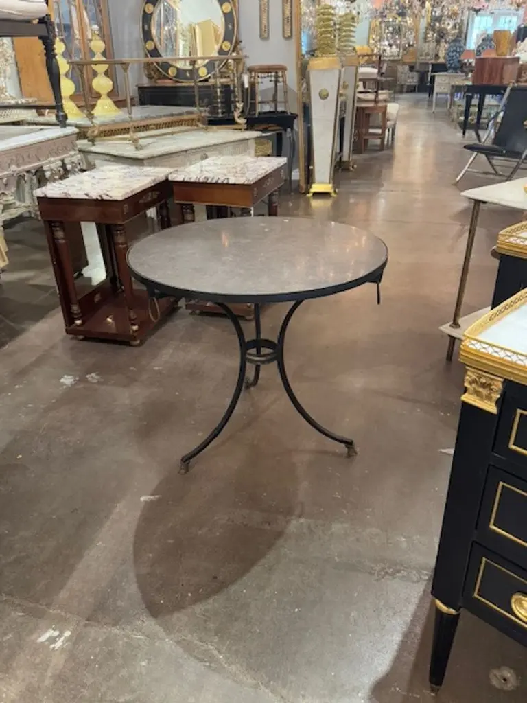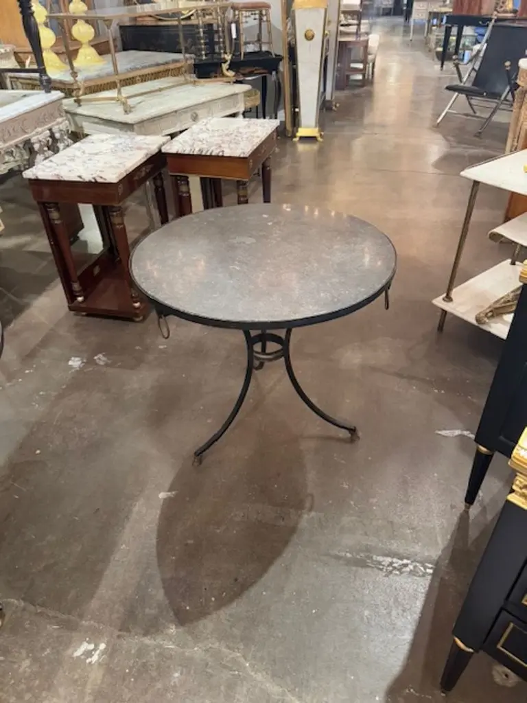 This 19th Century French table features a unique design with iron and brass construction, topped with luxurious marble. The tabletop material is exquisite marble, adding a touch of elegance to the French-style piece. The antique nature of the table adds a sense of history and charm, making it a standout piece in any room. Note: There are 2 available. Priced separately. Circa 1880 32w x 28h