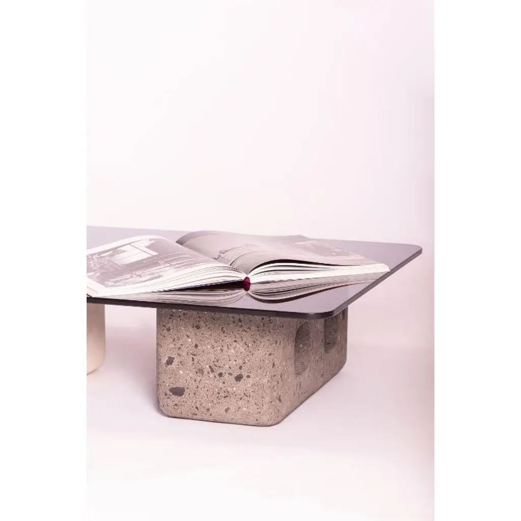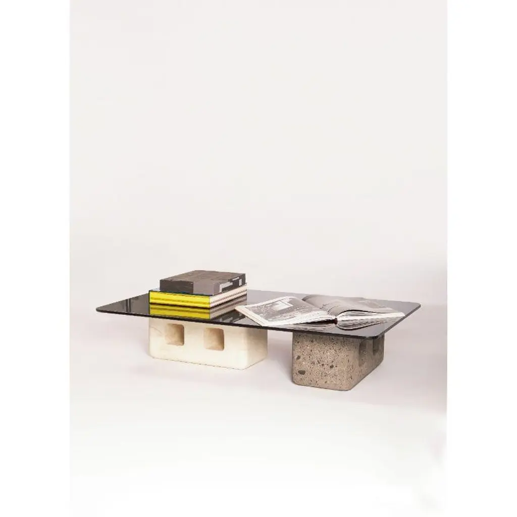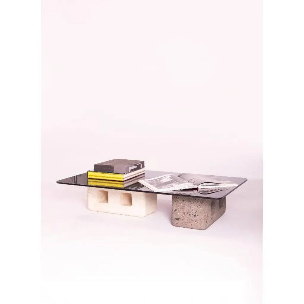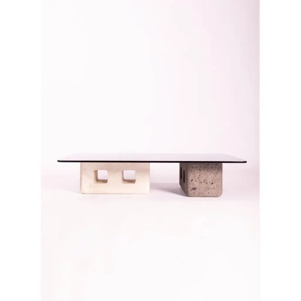 2 Blocks table by Chuch Estudio(Handmade in México)Materials: Ticul Stone, Mayan Cream Stone, Black Cantera, Mexican CanteraDimensions: 80cm x 80cm x 20cm H (80cm square of glass) SquareW 70 x L 110 x H 20cm (Glass top W 70 x L 110) Rectangle:Also Available: different finishesChuch Estudio is a design studio established in Mérida Yucatán. A creative partnership by an architect Aranza García, Engineer Lorena Madahuar and textile designer Natalia Ramirez, our pieces are for design-conscious people who are passionate about the way they live. Dedicated to contemporary crafts, art and slow design that awakens contemplation, curiosity and fun. We design interiors and products with interdisciplinary, poetic and sculptural approaches. We create our concept products with your own process, stories and art scenes.We love art, design, architecture, furniture, wine, music ... but above all we like meeting people with whom to collaborate and c R e A r !