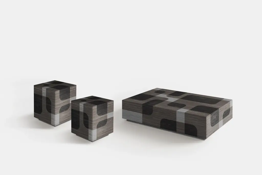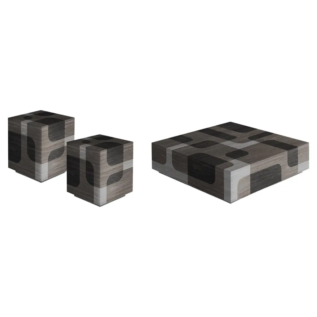 2 Bodega Side Tables And 1 Coffee Table In Black Wood Marquetry By Joel Escalona