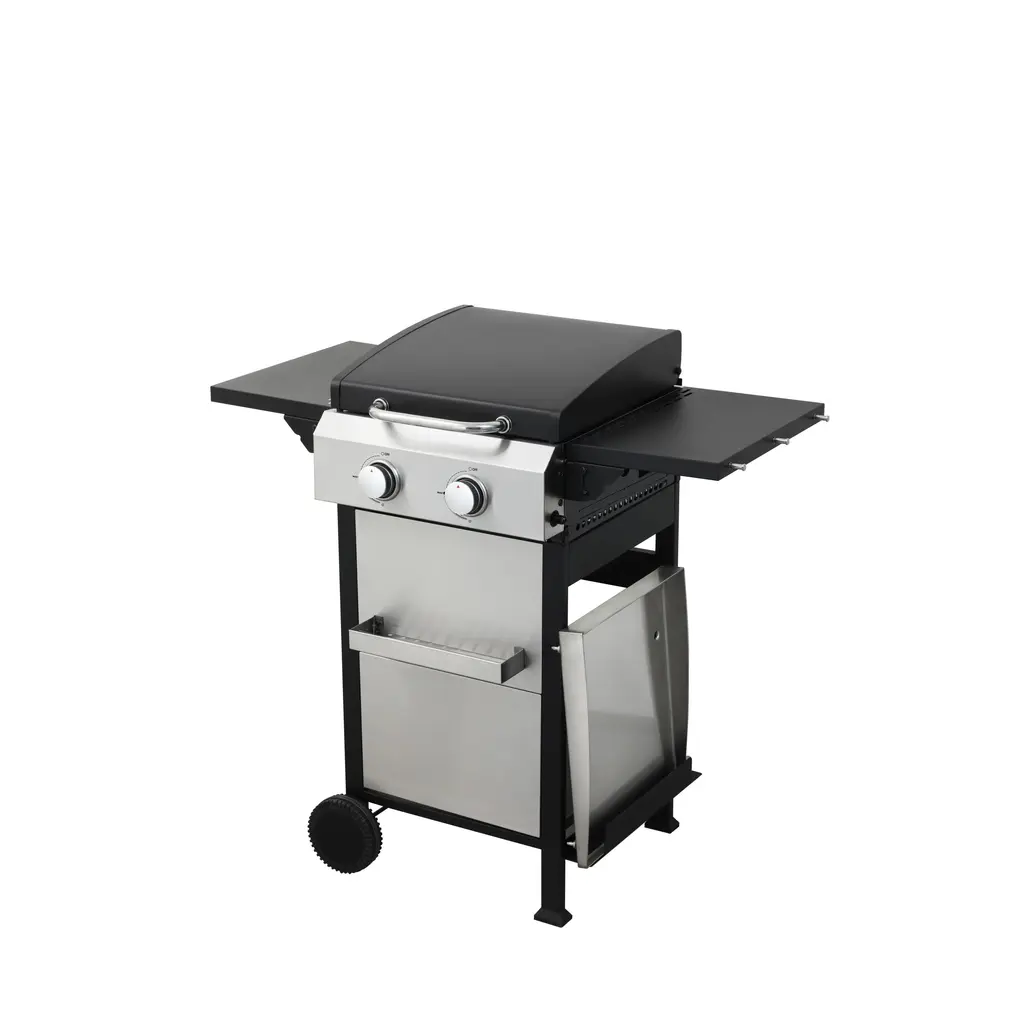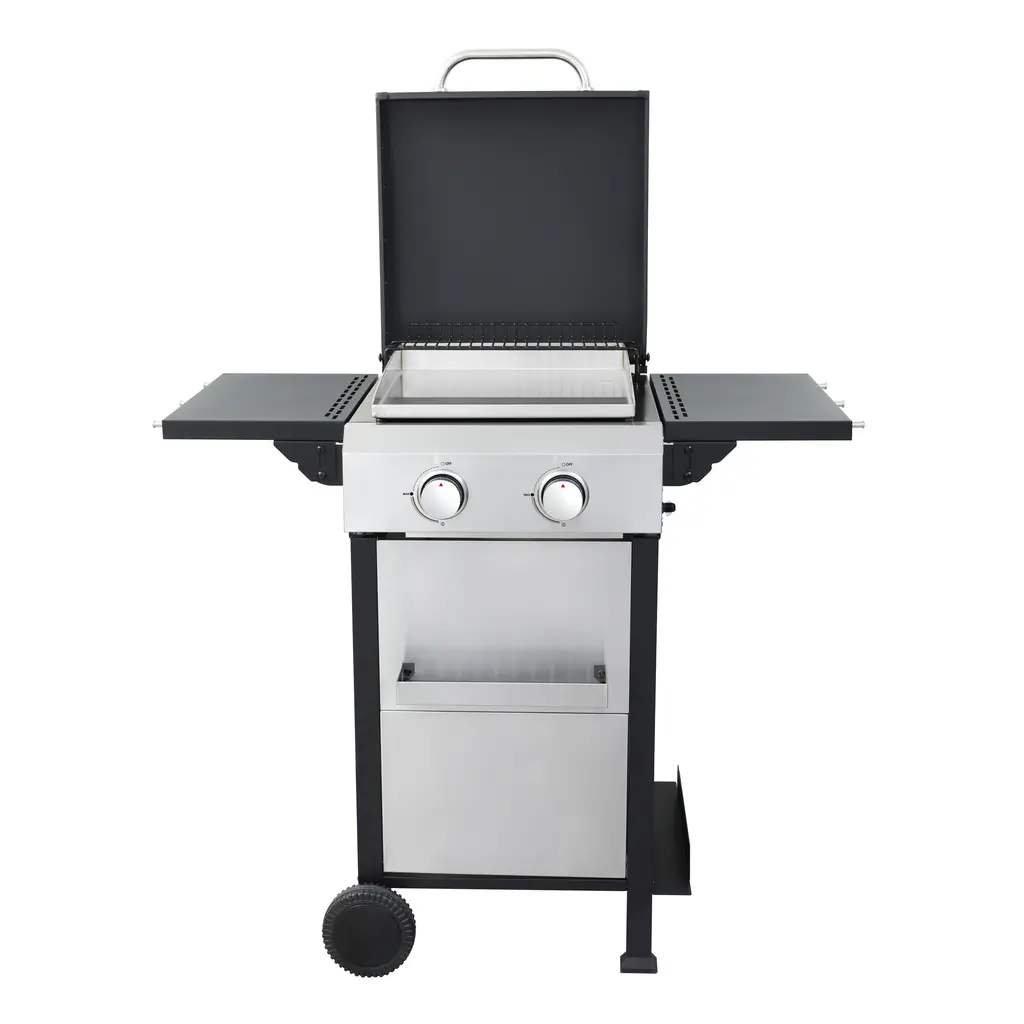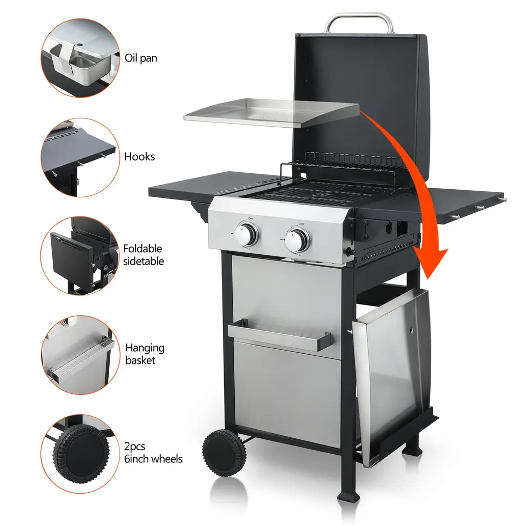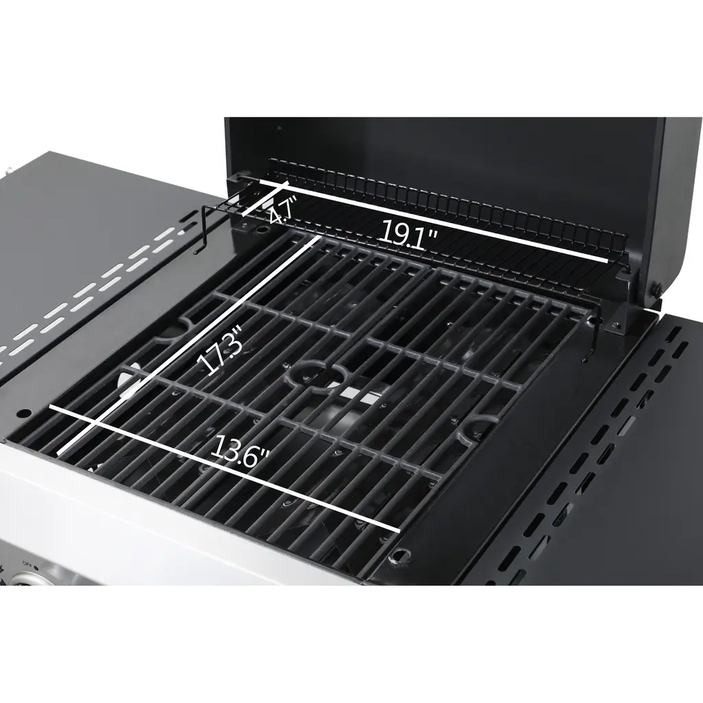2-Burner Propane Gas Bbq Grill, 24600btu Output With Wire Enamel Cooking Grids For Outdoor Barbecue, Foldable Side Table - Stainless Steel
