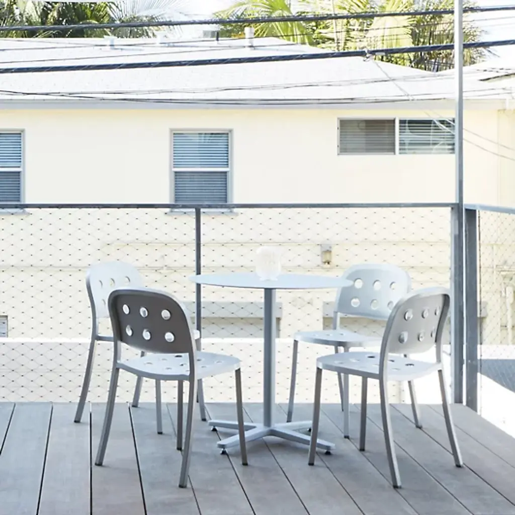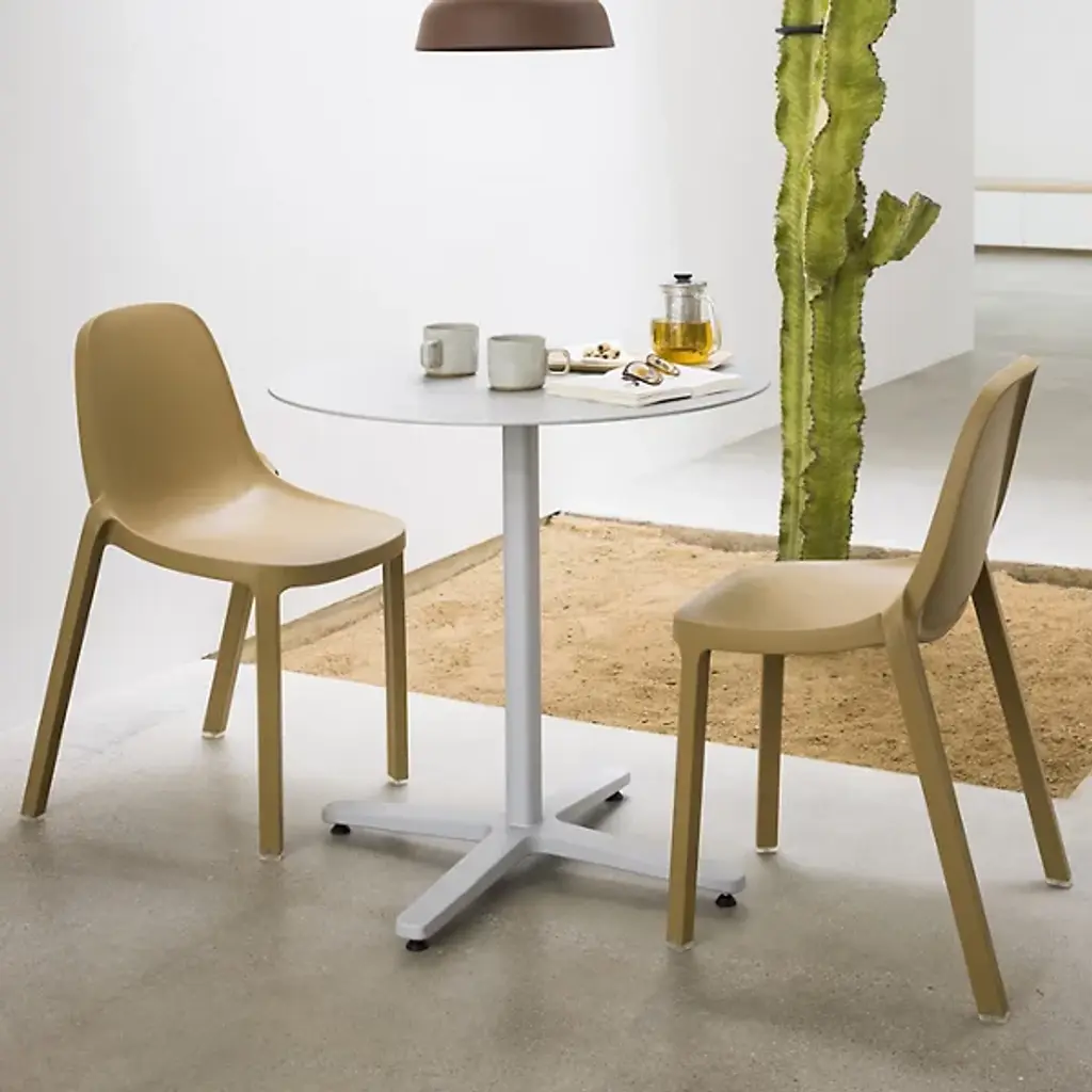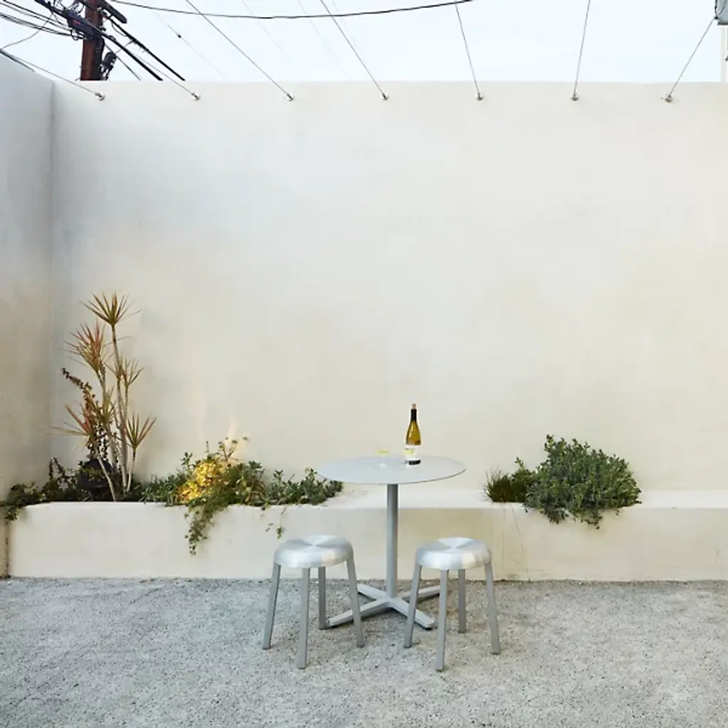 The 2 Inch X Base Round Cafe Table from Emeco is a balanced piece, layering its shapes for great versatility around the home. Creator Jasper Morrison brings a ‘super normal’ design approach centered on shape, character, as well as tension, and expression. This table exudes character off the bat with a strong x-shaped base. The rounded notes of this base carry into the cylindrical column and the circular tabletop. A metal construction gives the column and base a smooth, modern look. The circular table top makes it easy to pull up a chair and gather around with a low profile.