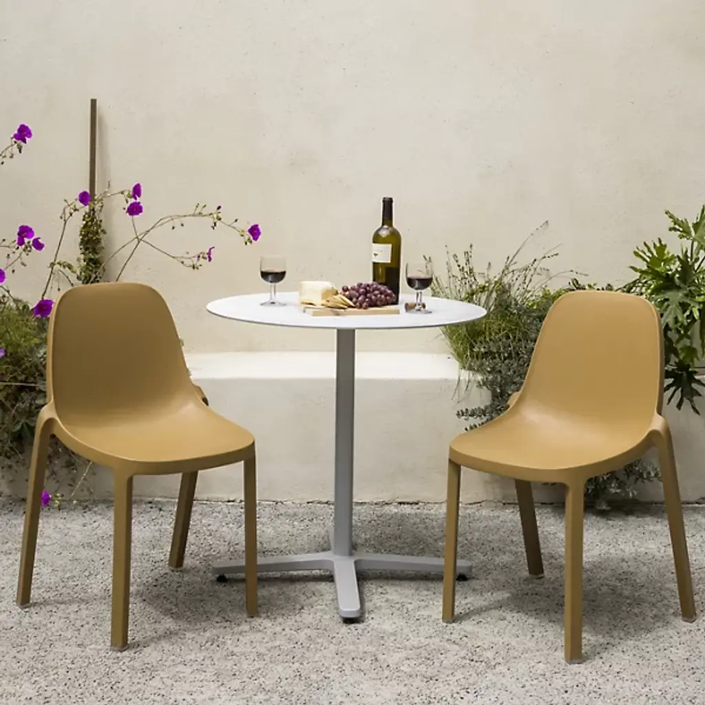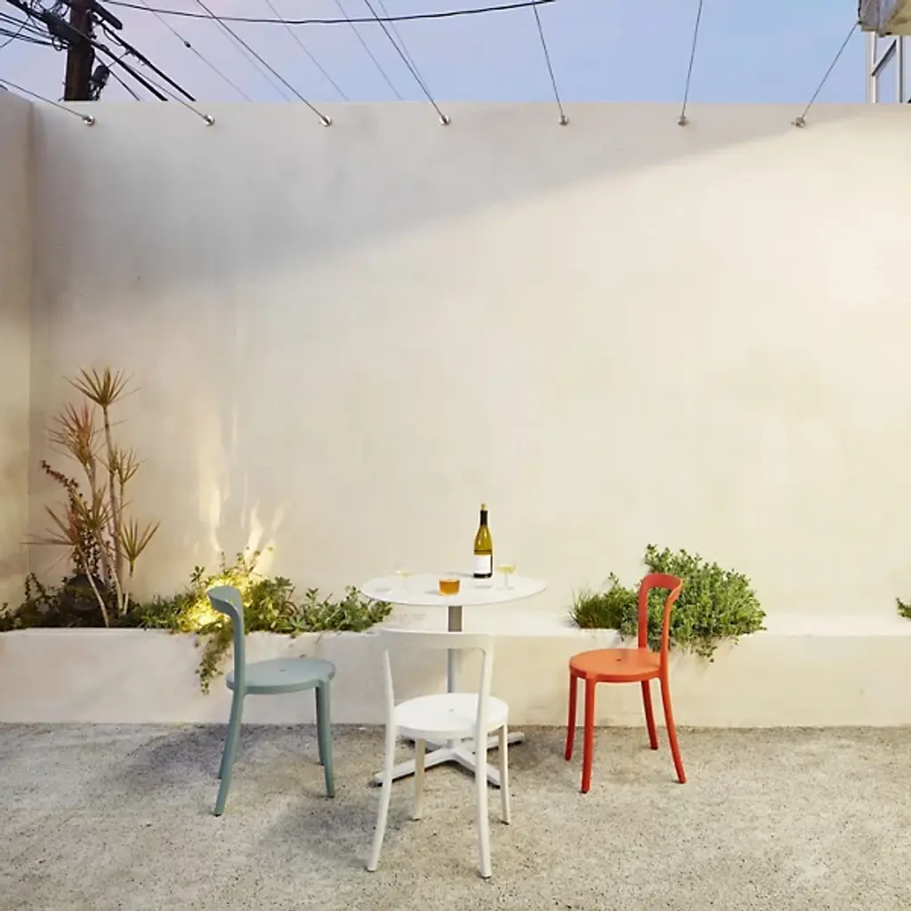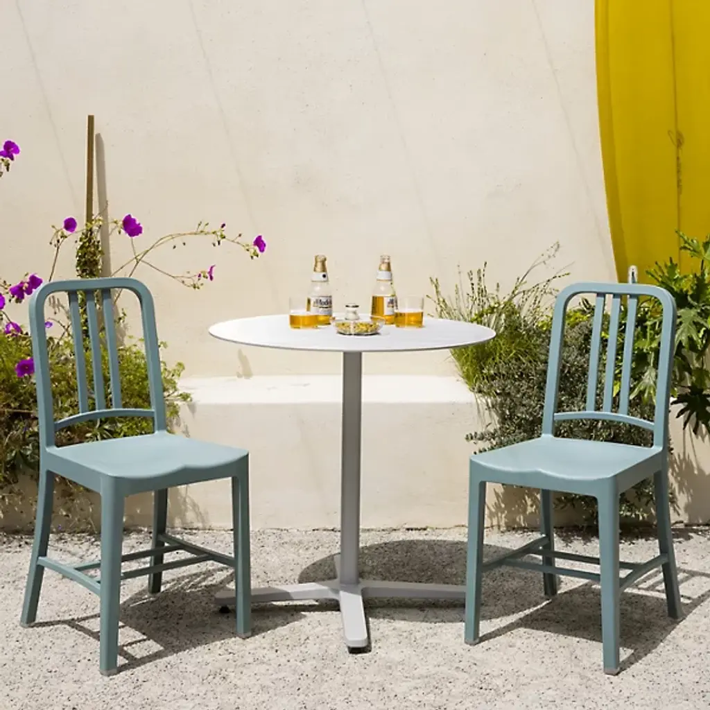The 2 Inch X Base Round Cafe Table from Emeco is a balanced piece, layering its shapes for great versatility around the home. Creator Jasper Morrison brings a ‘super normal’ design approach centered on shape, character, as well as tension, and expression. This table exudes character off the bat with a strong x-shaped base. The rounded notes of this base carry into the cylindrical column and the circular tabletop. A metal construction gives the column and base a smooth, modern look. The circular table top makes it easy to pull up a chair and gather around with a low profile.
