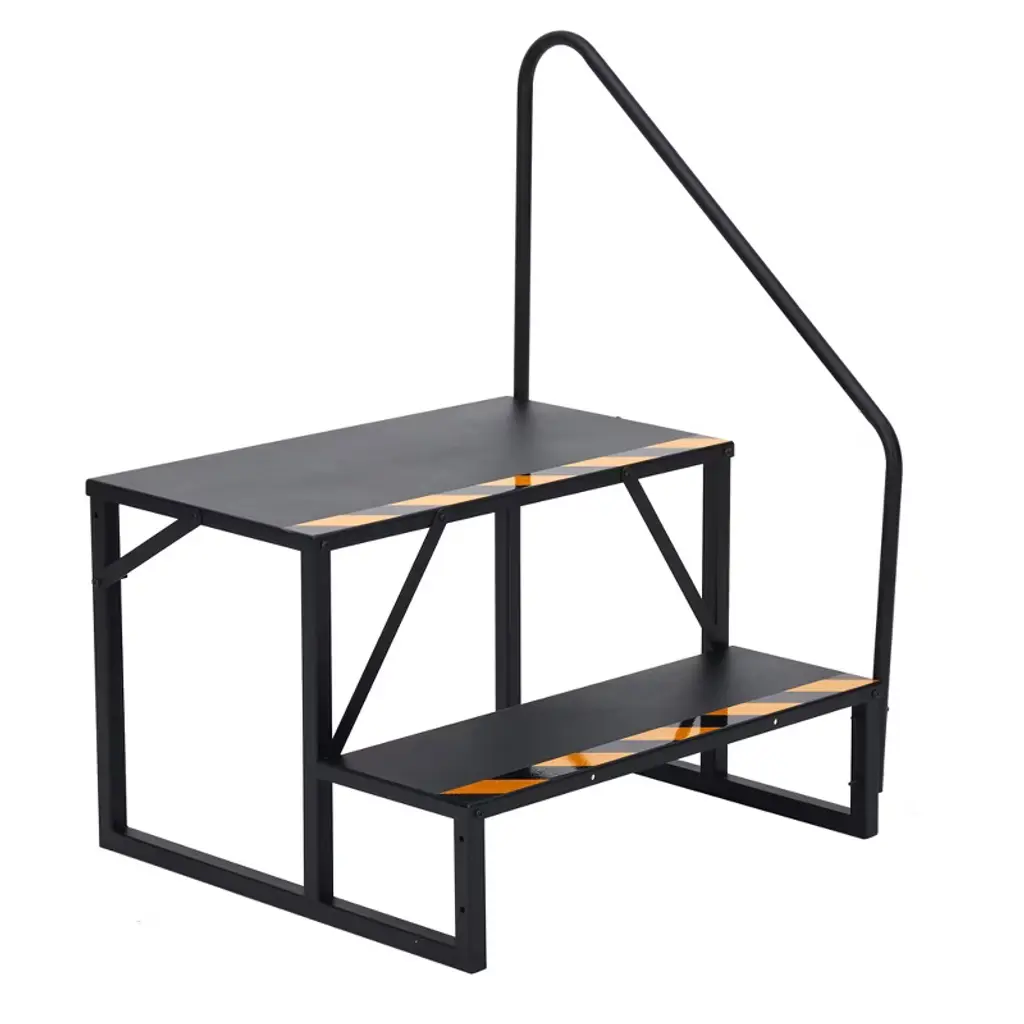 Color:Black Material:Heavy-duty carbon steel frame Anti-slip textured step surface Powder-coated finish Features: Foldable design for compact storage and transport Detachable handrail for added versatility Wide anti-slip steps for secure footing Quick-setup design requiring no tools for assembly All-weather resistant construction Ergonomic handrail grip for comfortable use Reinforced triangular support structure for enhanced stability Package Includes: 1 × Portable Step Stairs 1 × Detachable Handrail 1 × Set of Assembly Hardware 1 × Instruction Manual