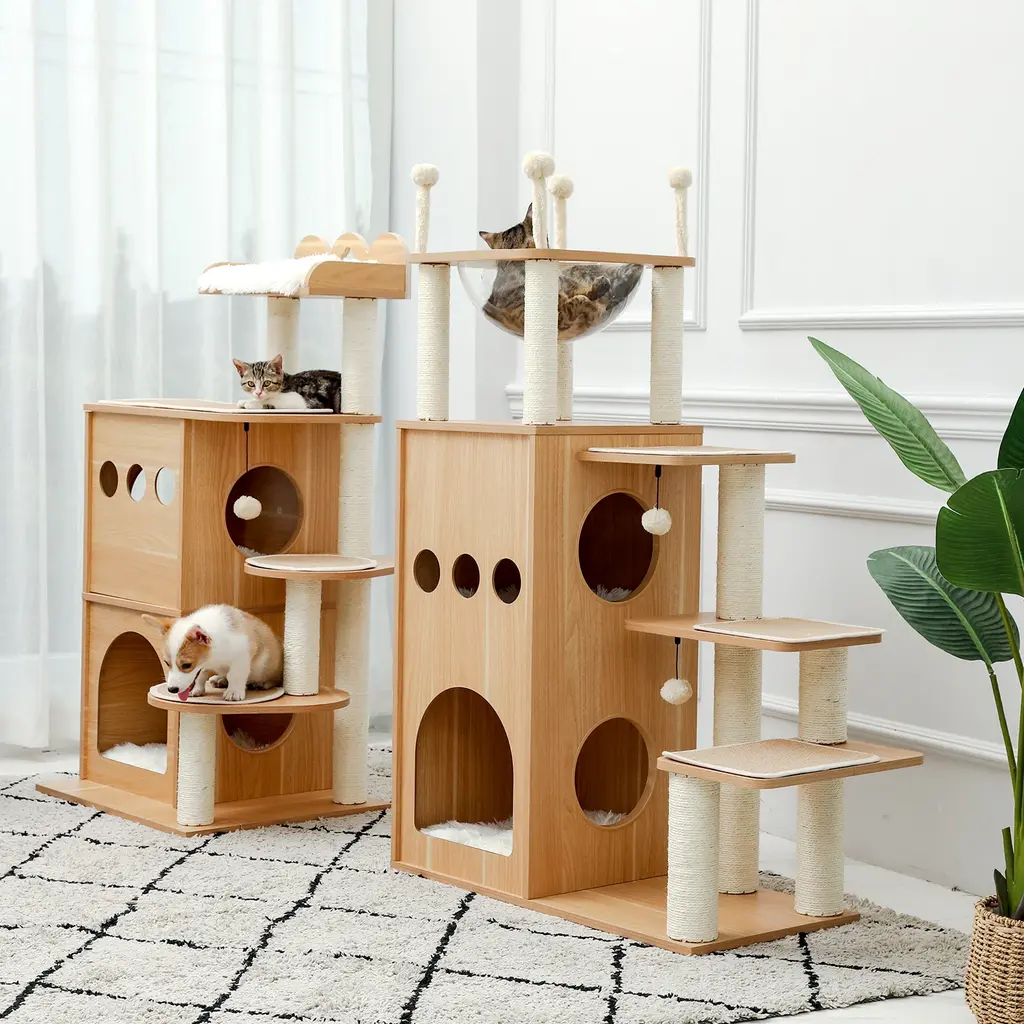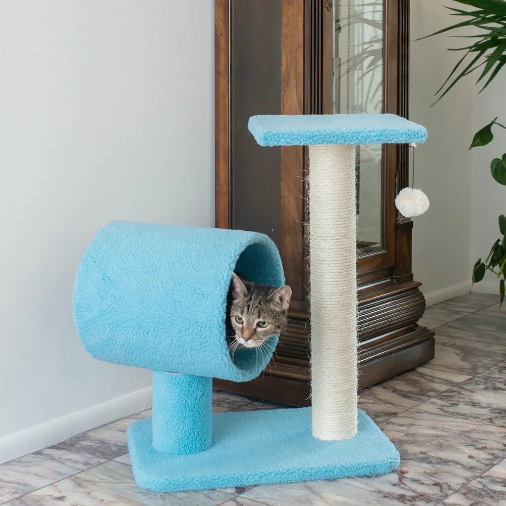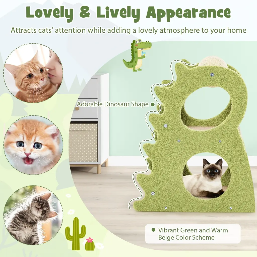 2-Tier Modern Cat Tree For Indoor Cats With Rotatable Sisal Scratching Ball - Multi