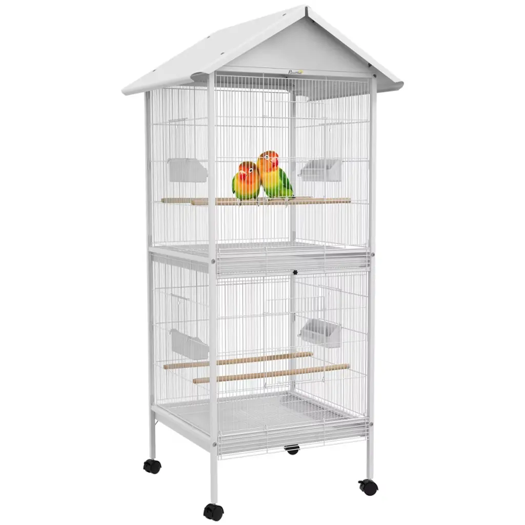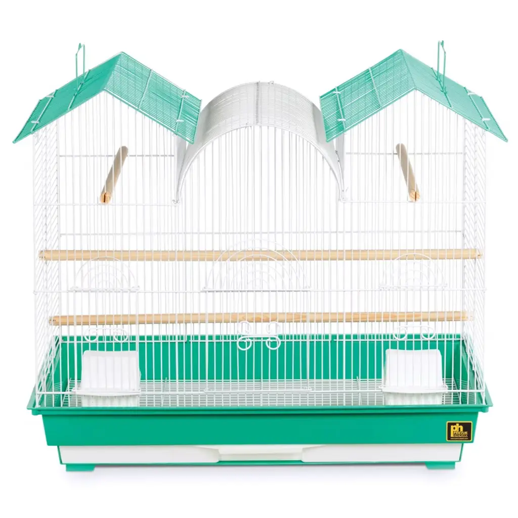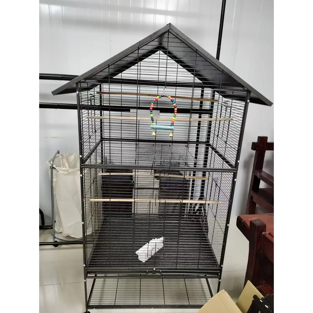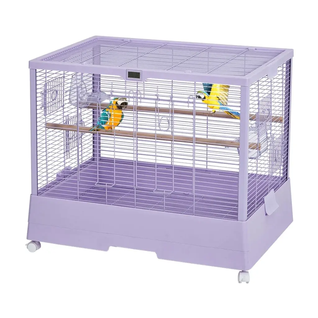 This bird cage comes with 2 transparent plastic boxes, 2 standing rods, a plastic drawer bottom tray, and a swing—perfect for housing small birds like parakeets, canaries, and finches.