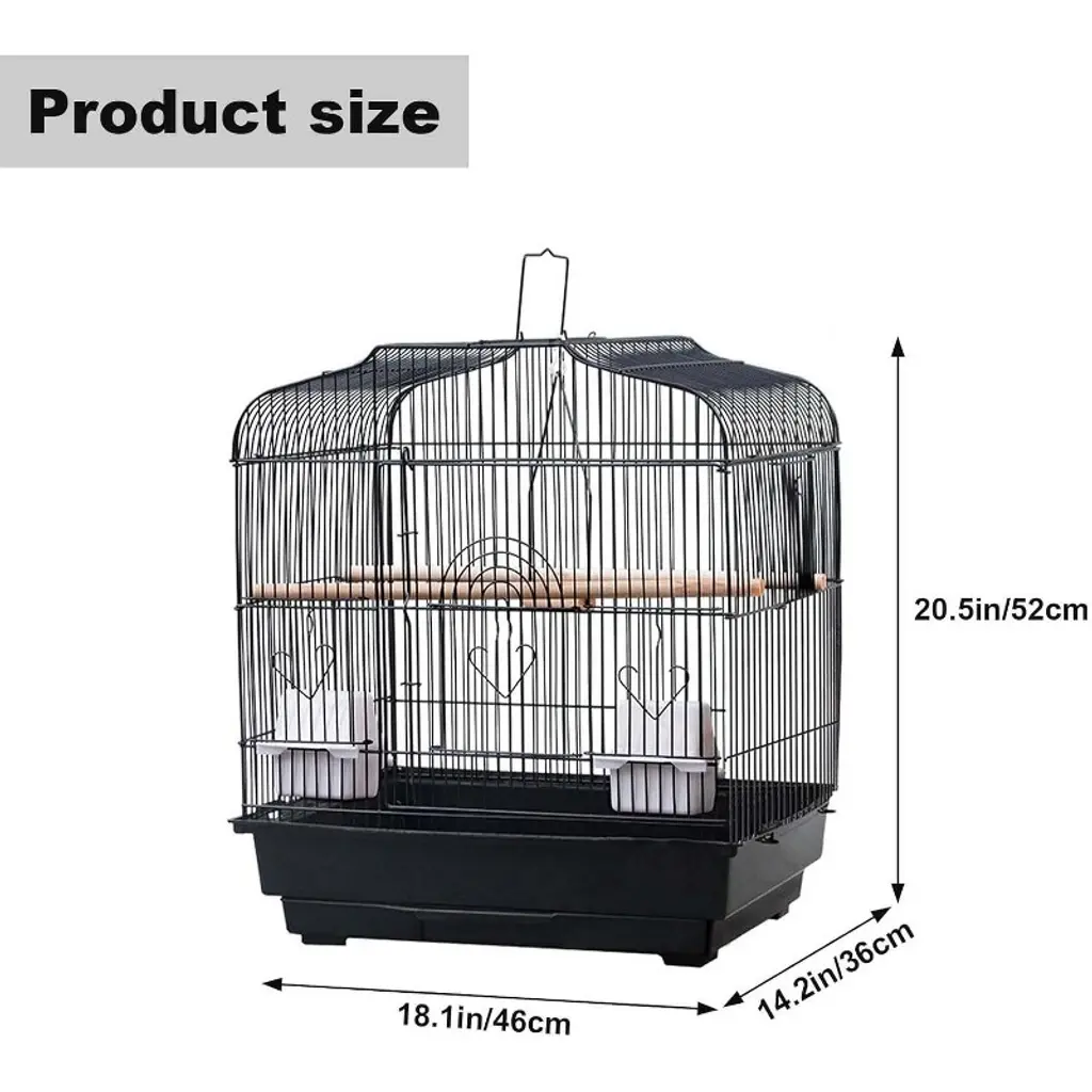20.5" Portable Travel Bird Cage W/handle, Perch, Pole & Feeder - For Lovebirds, Cockatiels, Canaries & Small Parrots