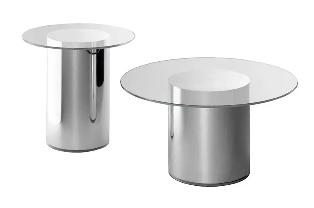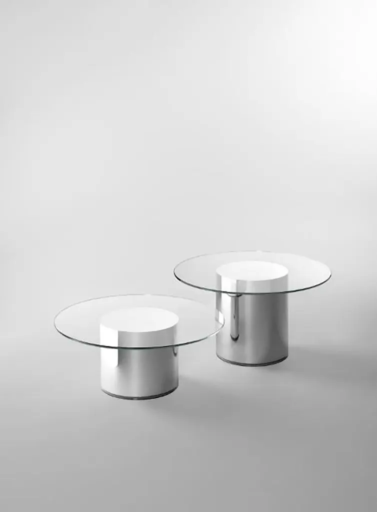 2001 side tables designed by Ramón Úbeda & Otto Canalda for BD Barcelona. Ramón Úbeda and Otto Canalda have been working together for more than a decade. The pair take contrasting but complementary approaches to their work – one is more technically minded while the other is more conceptual. 2001 Side Tables being one of their most praised piece of work has an ultra-clear tempered glass top, supported by a Pyrex tube leg. Both the leg and the surface have been mirror-finished for a sense of elegance. This side table is available in three dimensions; all having a maximum load capacity of 8 kg each. Ramón Úbeda and Otto Canalda lend your living room a perfect charm to spark coffee table conversations with the metallic sharp appearance evoking an optical illusion, a perfect future not belonging to the past. Pricing of 25 cm height table is given here.Multiple configurations are available.Indoor and outdoor use.