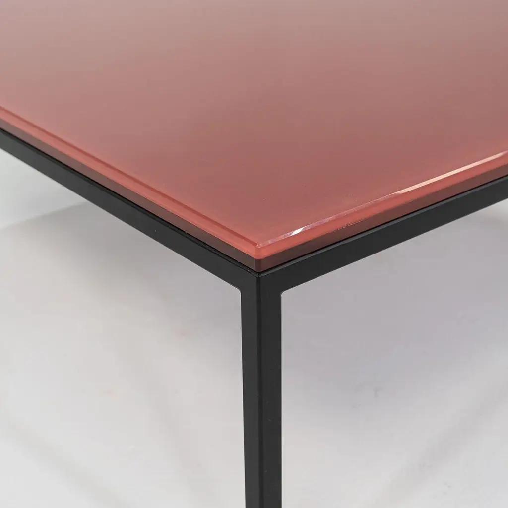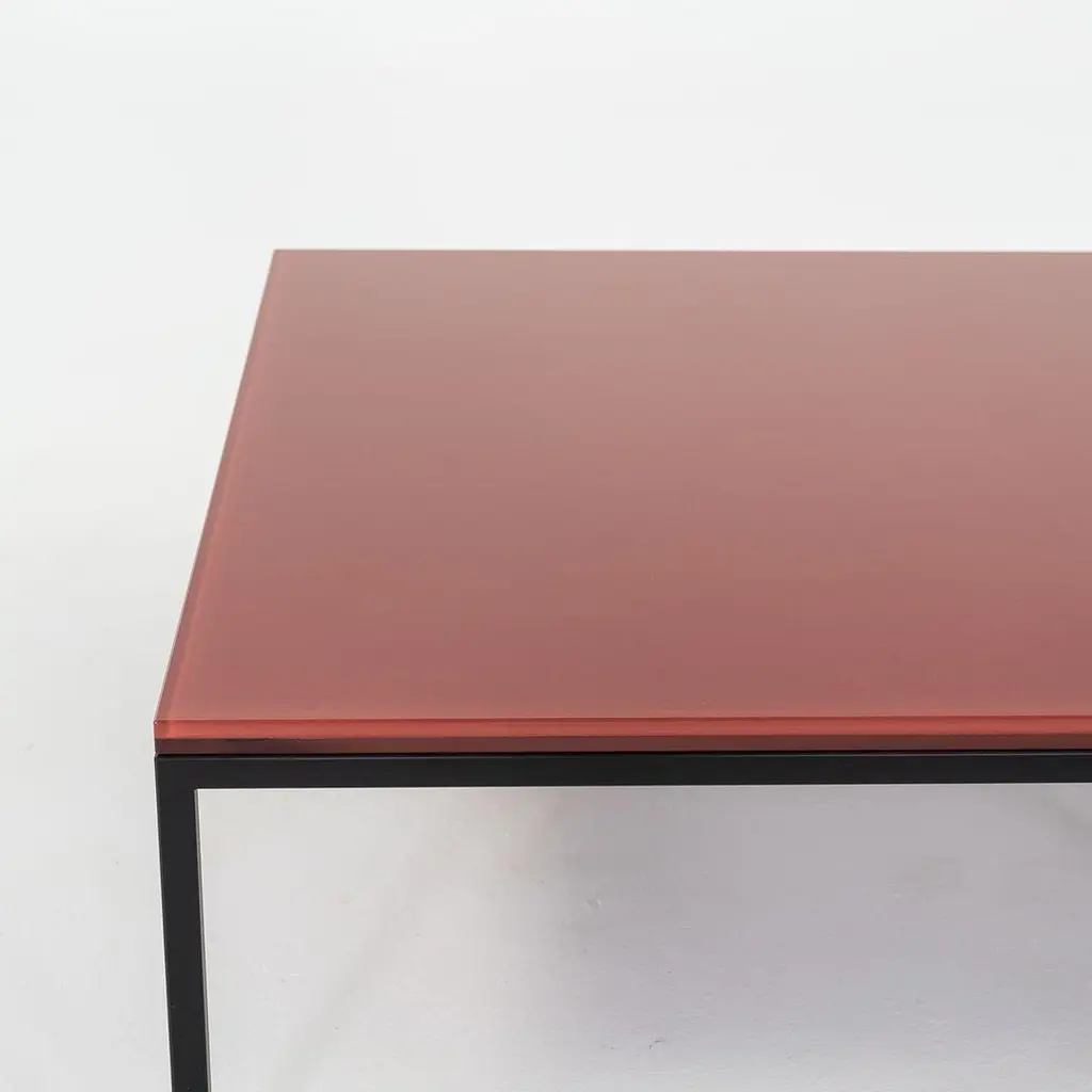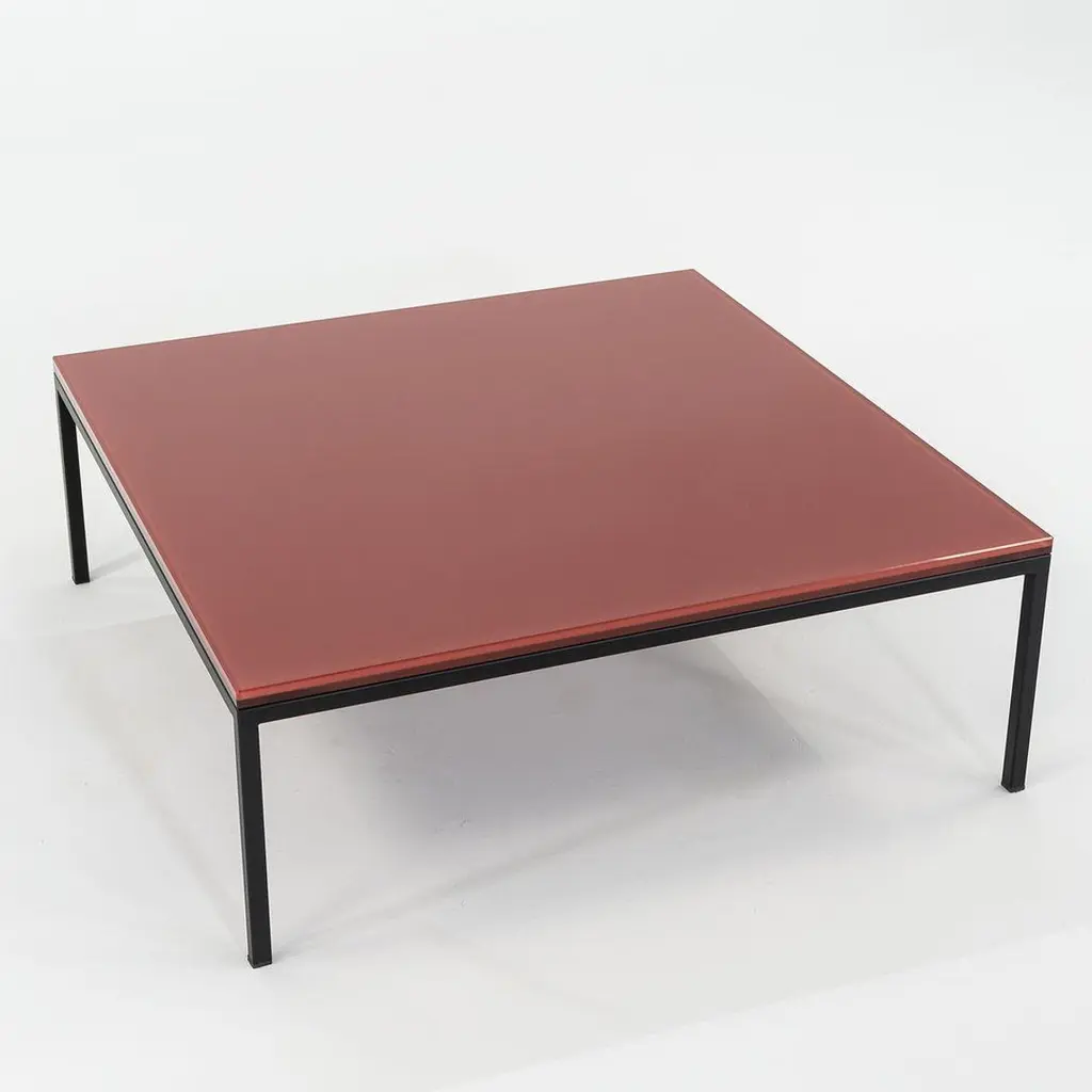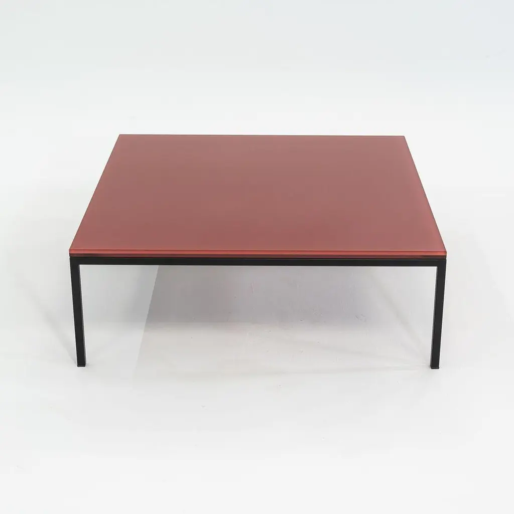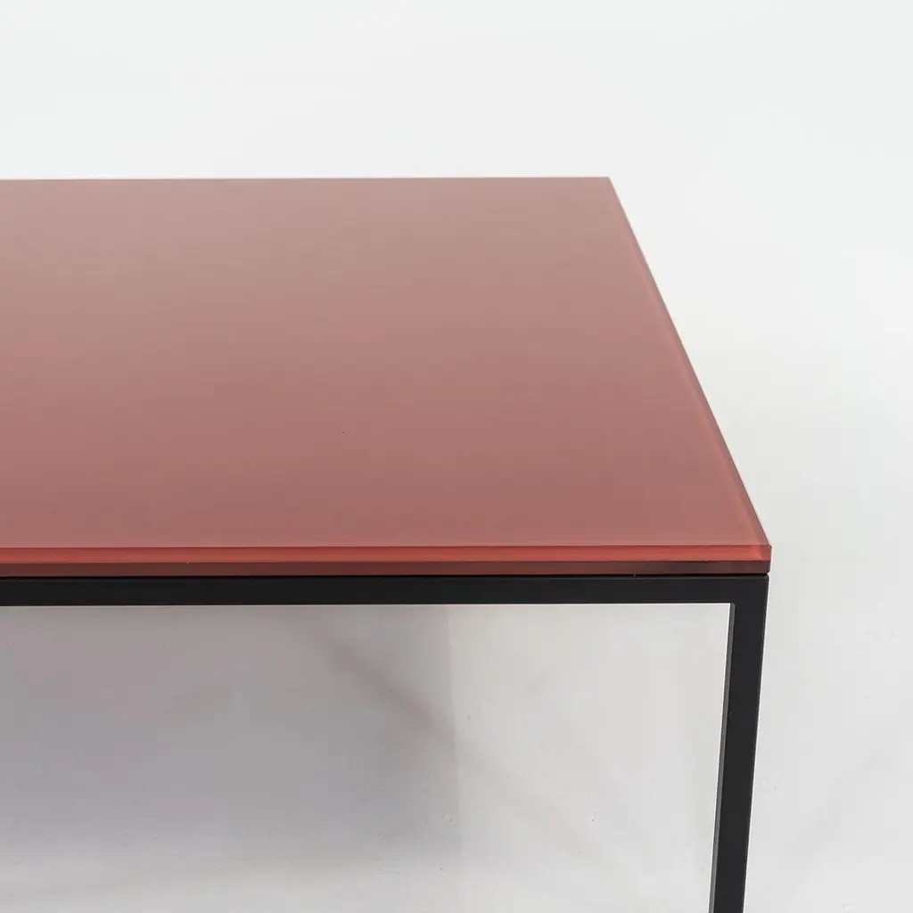 This is a Nana table, originally designed by Annabel Karim Kassar in 2021. This particular example was produced by Moroso in Italy circa 2023. The table is comprised of a steel base with a powder coat finish and a laminated glass top in Oxide Red (RAL 3009). The listed price includes one table and we have two available for purchase. The table measures 35.5 inches long and wide with a height of 12.75 inches. The table is in very good condition with minimal wear. Please see photos.