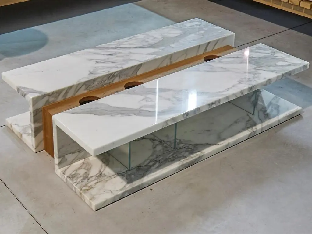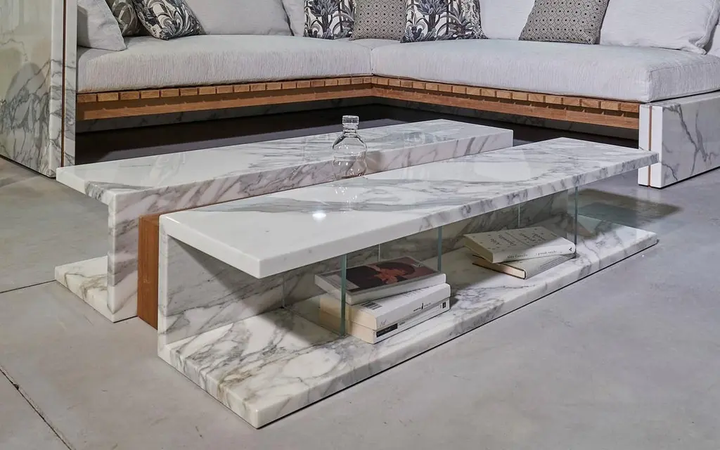 The Bettogli low table is designed to encourage socializing, with a place to put bottles of champagne to drink with friends. The fusion of three different sensory elements: marble, wood, and glass that match one another perfectly.Bettogli Low Table is made in Statuario marble, a rare quality of marble that is extracted from the Bettogli quarries in North Tuscany where it gets the name from. A great option for indoors and outdoors.Materials: Carrara marble, teak and glassDesigned and made in Carrara, Italy. Available in Bianco Carrara option.