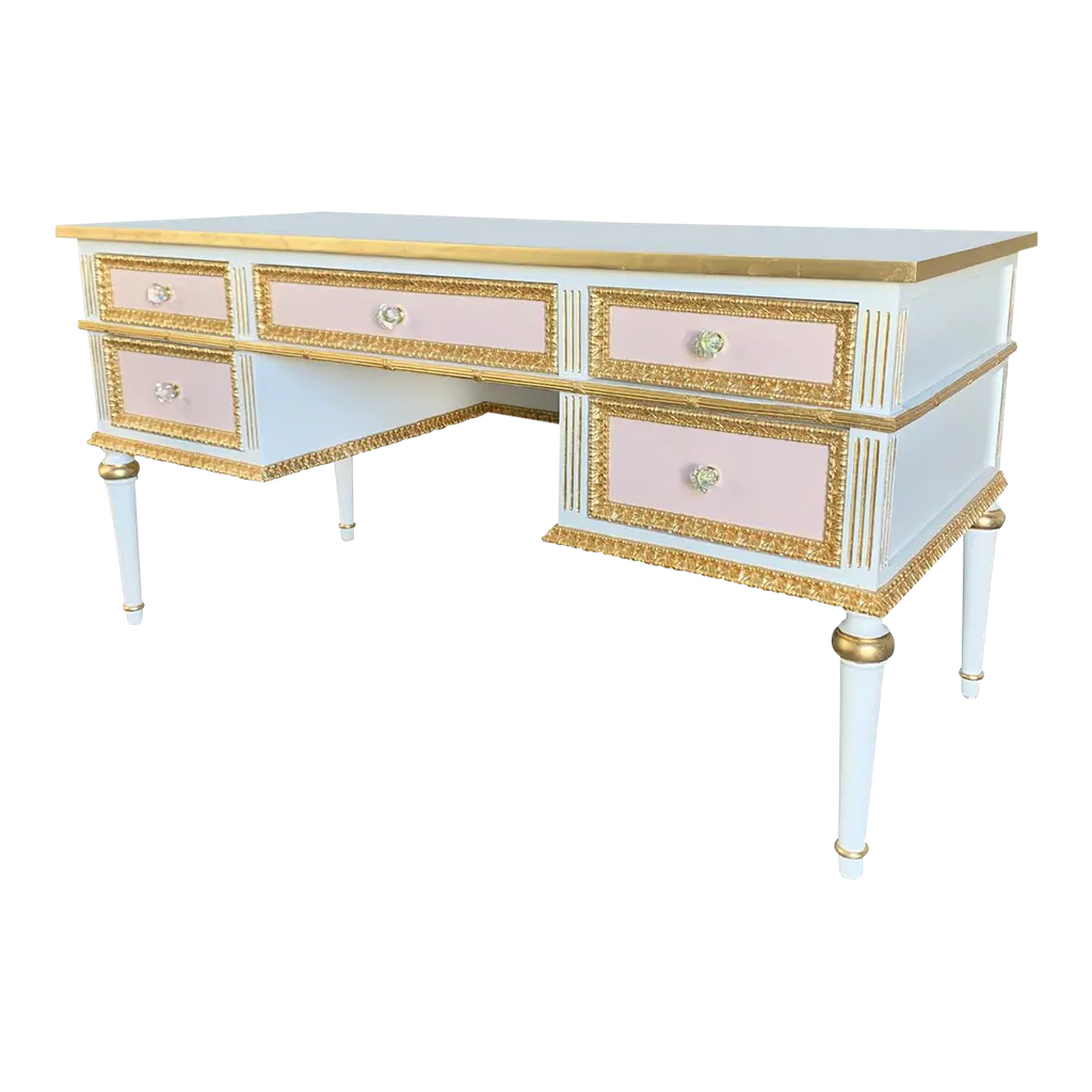 21st Century Brocart Dressing Table With Hand-Carved Legs
