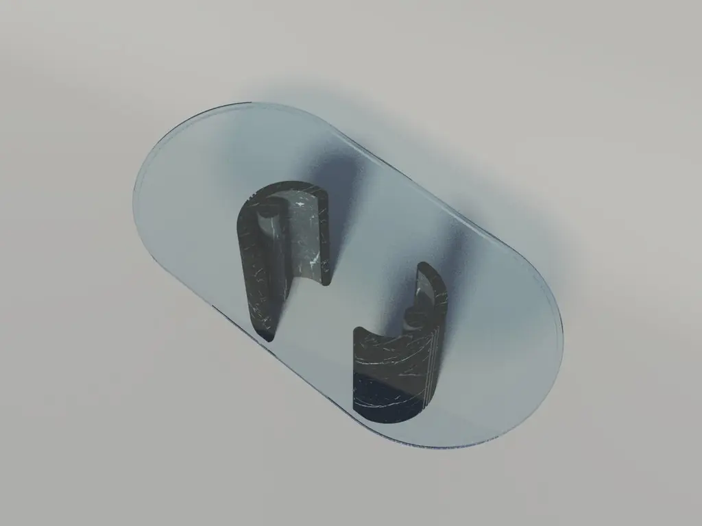 21st Century By Arch.k.hacke "Hacke O" Table With Marble Bases And Crystal Top