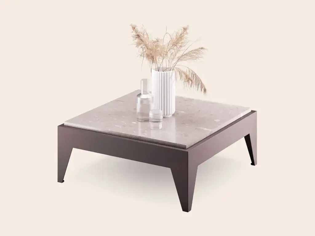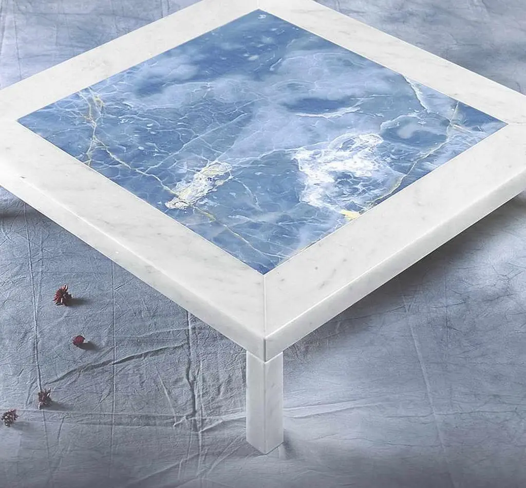 21st Century By Arch. M.piva "Fumo" Square Marble Table In White P. & Blu Onix