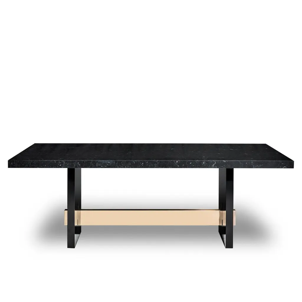 Geometry Marble Table, Nero Marquina Top, Handcrafted in Portugal by DuisttThe Geometry marble table combines the luxury of the Nero Marquina marble with the strong geometric lines of the table legs. It is made with a high gloss lacquered wood and polished brass cross bar. The table is an expressive and interesting piece of furniture, combining aesthetics and symmetry to create a truly unique design.Shown in black lacquered legs and a Nero marquina table top. Custom sizes and materials are available upon request, and production lead time is 8 to 10 weeks. Designed and manufactured by Duistt in Portugal - Europe. Duistt arose in 2014 from the will and desire to produce high-end furniture pieces with special attention to quality and timeless design. Blending ancient knowledge and techniques with contemporary aesthetics, Duistt’s design approach elevates the user experience, guaranteeing them delightful pieces crafted with art that are unique and can last generations.