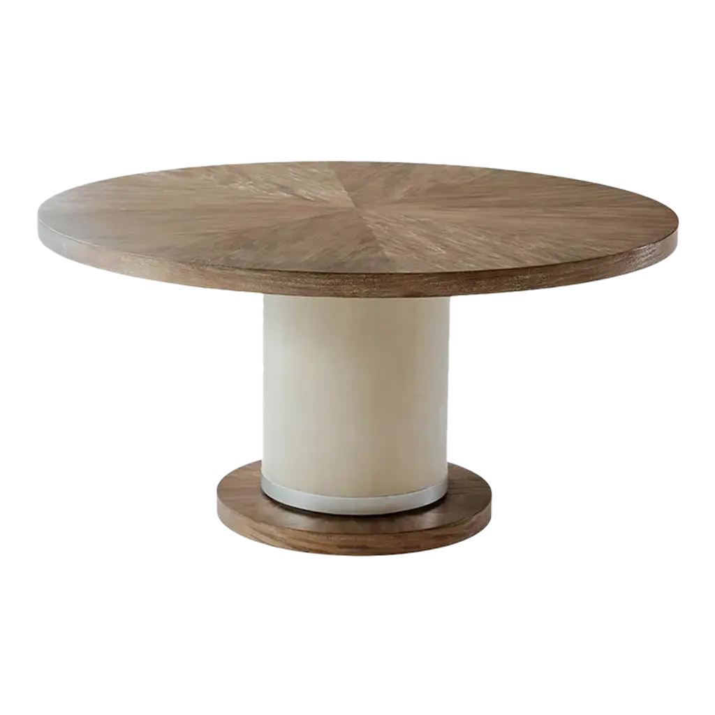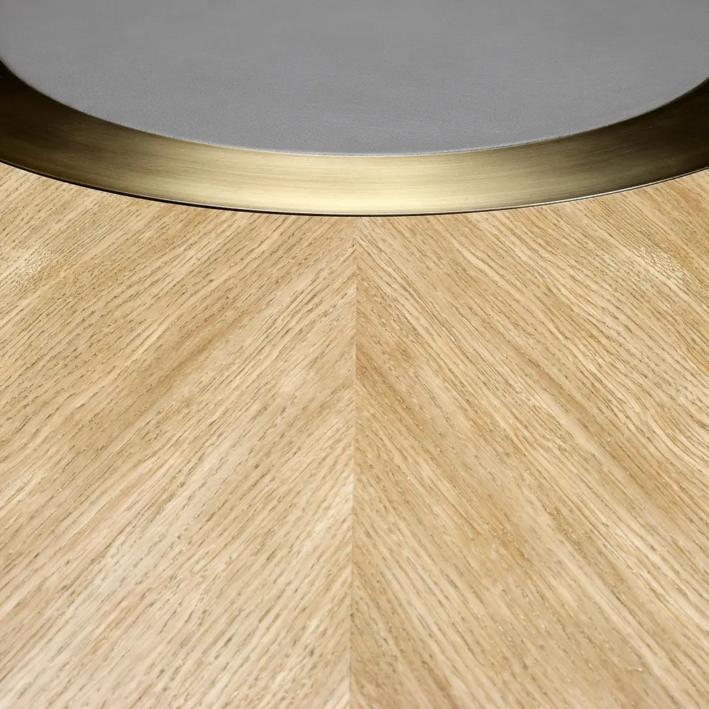 21st Century Lune Table, In Gold Limed Oak, Bronze And Leather, By Duistt