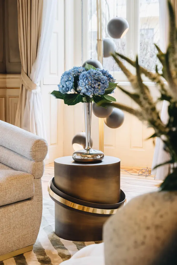 21st Century Orbit Accent Table, Dark Bronze And Polished Brass, By Duistt
