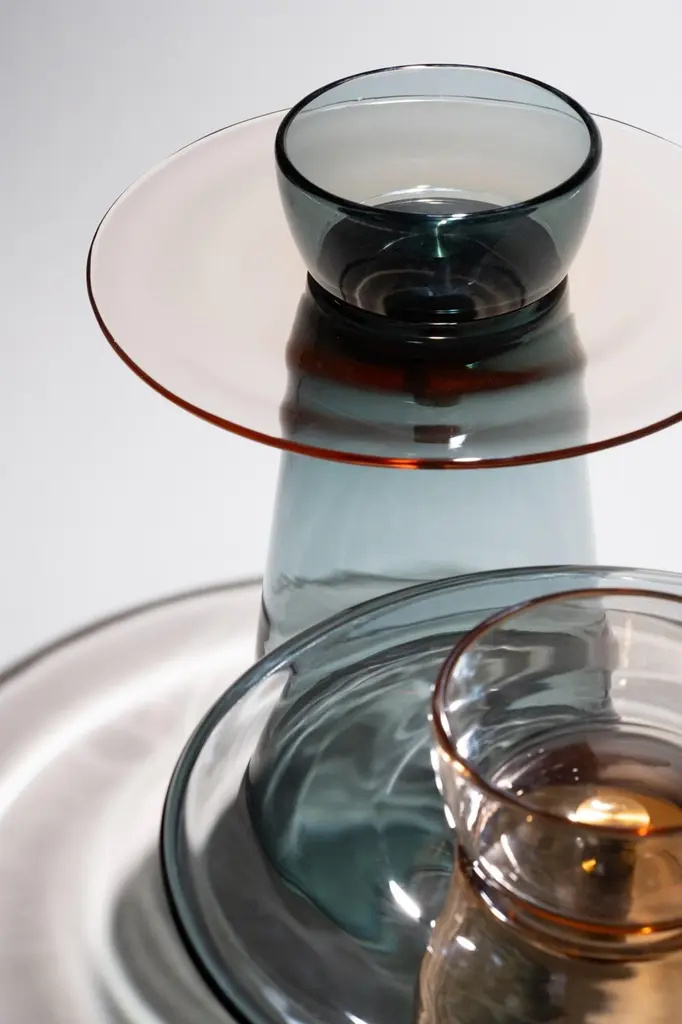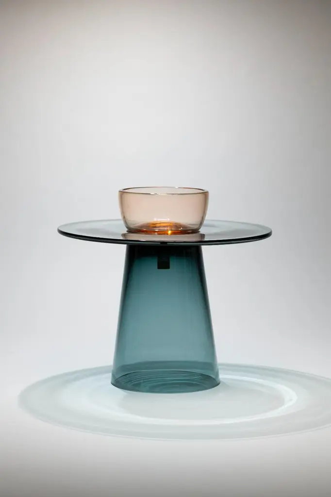 Angels is a collection of tables in Murano glass designed by the Paritzki&Liani (Tel Aviv, Israel) for Purho in 2023.Like ethereal figures of light and reflection, the Angels tables represent a small interior architecture in which the three pieces that compose them — bases of different heights (h.440/350), the top (d.500) and a bowl blown by master Andrea Zilio — join together to form a world of colours, vibrating in the space of perception.In these tables, blown glass is structure. The simplification of forms or their abstraction lead to an aesthetic dimension of tension created by the prominent thicknesses of the sections and by the significant surfaces for this type of processing. The inspiration for the colours of the Angels tables comes from the observation of monochrome chiaroscuro painted artefacts made within the Italian pictorial tradition of the late 1400s. The delicate shades of rosé, ochre, grey are joined by more decisive colours such as moss green, deep blue, amethyst for a chromatic balance capable of being continuously renewed based on varying combinations of the different components of the tables.Available versions :base rosé, top moss green, bowl amethyst base rosé, top moss green, bowl rosébase rosé, top moss green, bowl bluebase rosé, top rosé, bowl amethystbase rosé, top rosé, bowl bluebase blue, top blue, bowl amethystbase blue, top blue, bowl amberbase blue, top blue, bowl rosébase blue, top moss green, bowl bluebase blue, top amethyst, bowl blue