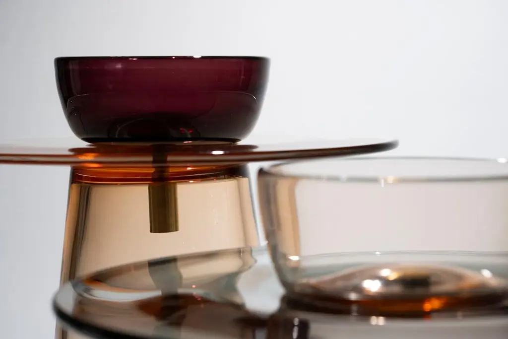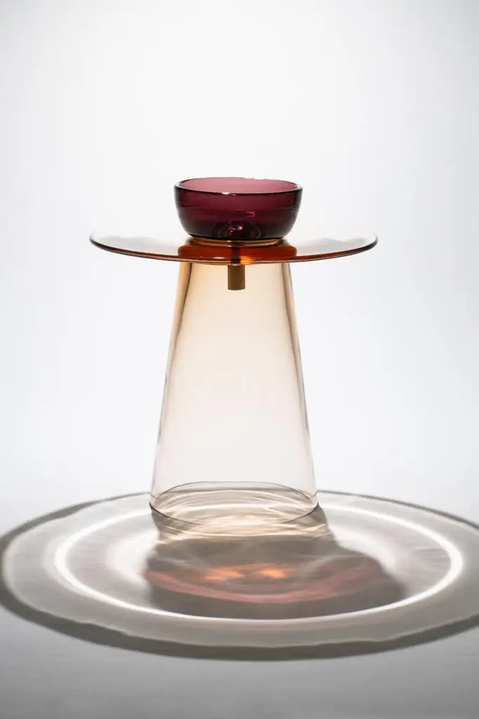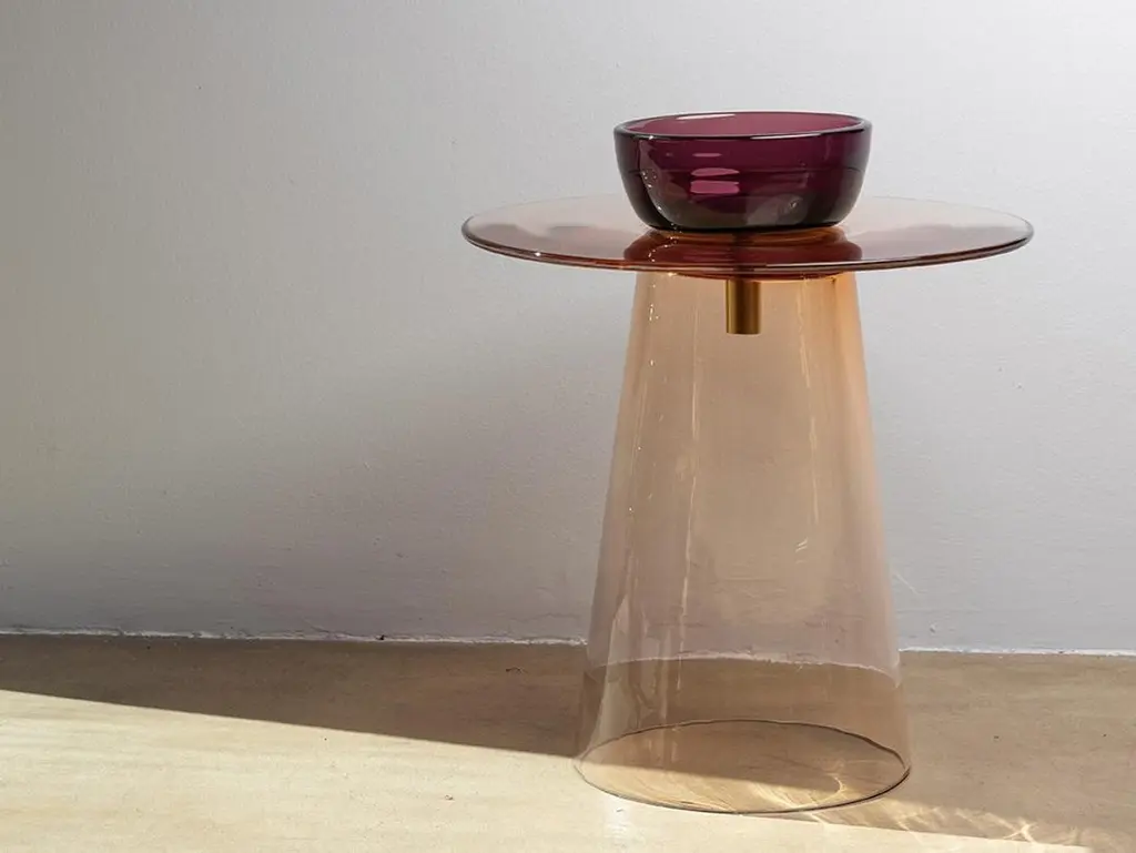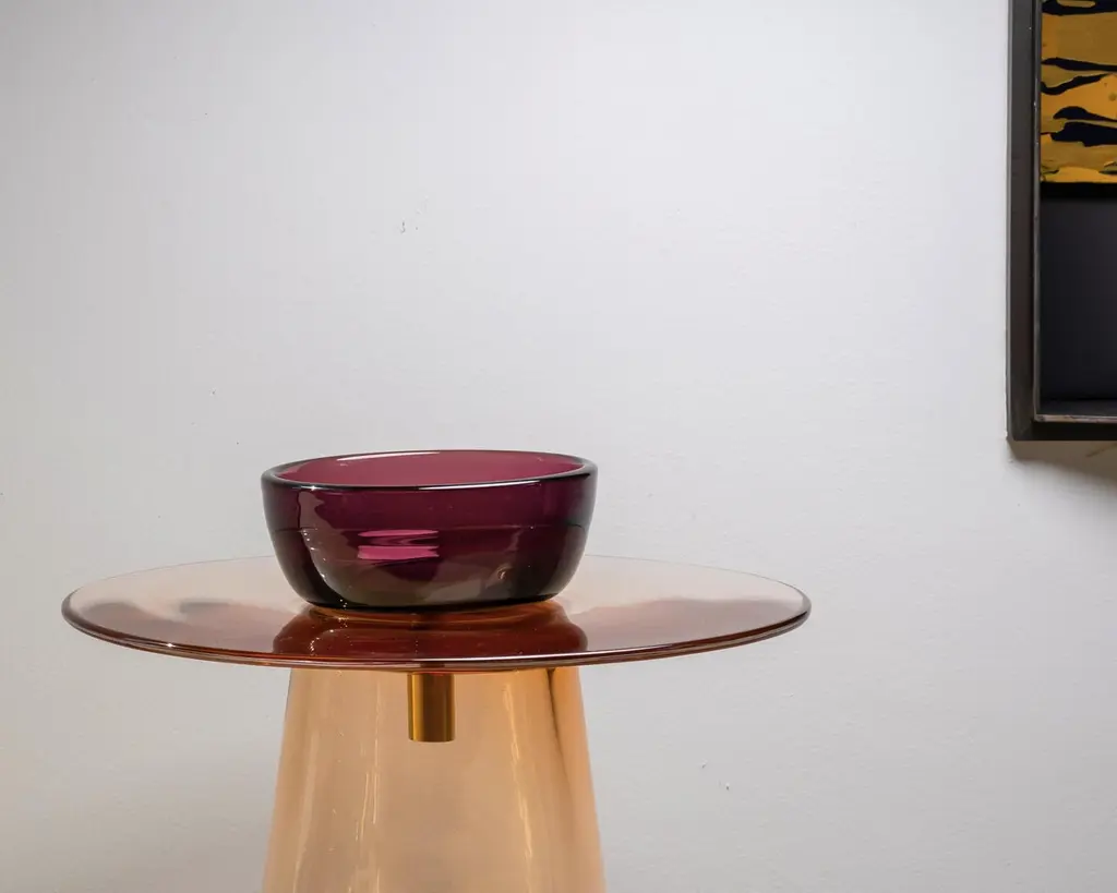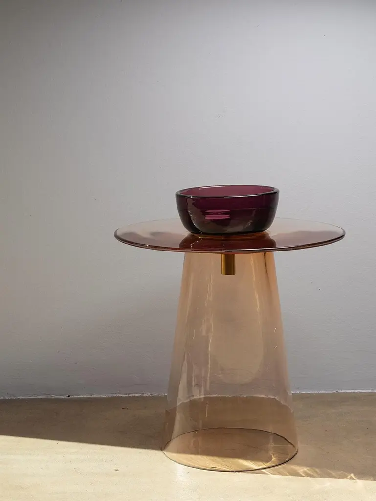 Angels is a collection of tables in Murano glass designed by the Paritzki&Liani (Tel Aviv, Israel) for Purho in 2023.Like ethereal figures of light and reflection, the Angels tables represent a small interior architecture in which the three pieces that compose them — bases of different heights (h.440/350), the top (d.500) and a bowl blown by master Andrea Zilio — join together to form a world of colours, vibrating in the space of perception.In these tables, blown glass is structure. The simplification of forms or their abstraction lead to an aesthetic Dimension of tension created by the prominent thicknesses of the sections and by the significant surfaces for this type of processing. The inspiration for the colours of the Angels tables comes from the observation of monochrome chiaroscuro painted artefacts made within the Italian pictorial tradition of the late 1400s. The delicate shades of rosé, ochre, grey are joined by more decisive colours such as moss green, deep blue, amethyst for a chromatic balance capable of being continuously renewed based on varying combinations of the different components of the tables.Available versions :base rosé, top moss green, bowl amethyst base rosé, top moss green, bowl rosébase rosé, top moss green, bowl bluebase rosé, top rosé, bowl amethystbase rosé, top rosé, bowl bluebase blue, top blue, bowl amethystbase blue, top blue, bowl amberbase blue, top blue, bowl rosébase blue, top moss green, bowl bluebase blue, top amethyst, bowl blue