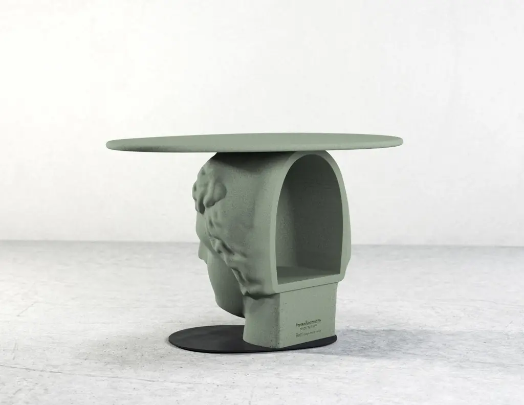 Surrealism, primitivism, metaphysics and brutalism. Art together with architecture and design build a scenario of inspirations and continuous references through which the material rises to an expressive language, ready to welcome and rework formal suggestions of different origins. Betti and Fusto the series that introduce the new design approach. A human face with mysterious origins and a clear classical reference to soften the brutalism of concrete.Material:Concrete and metal baseColor available: Ink, silver, fir, dark chocolate, powder, brick, ultramarine and creamSome of the images enclosed are rendering.