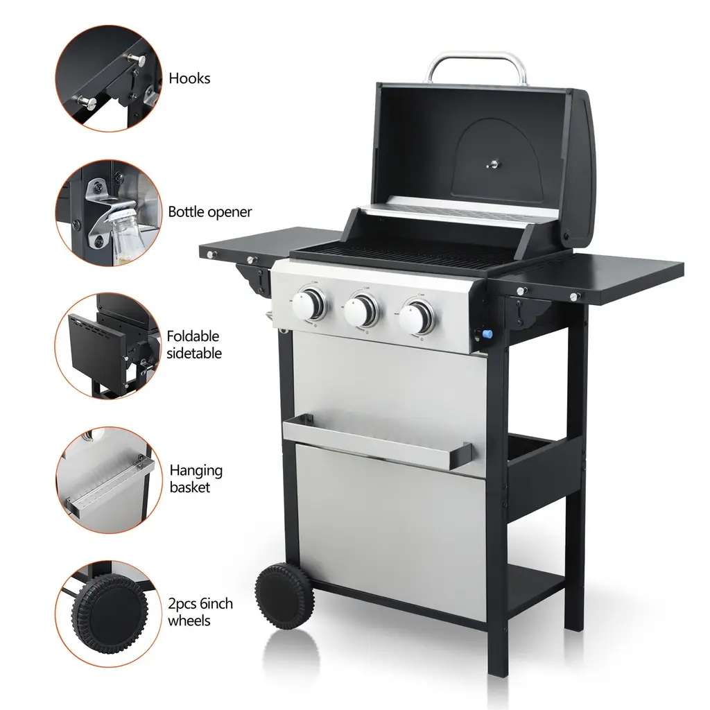 25650 Btu 3-Burner Propane Gas Outdoor Bbq Grill With Grid, Side Table - Propane Gas