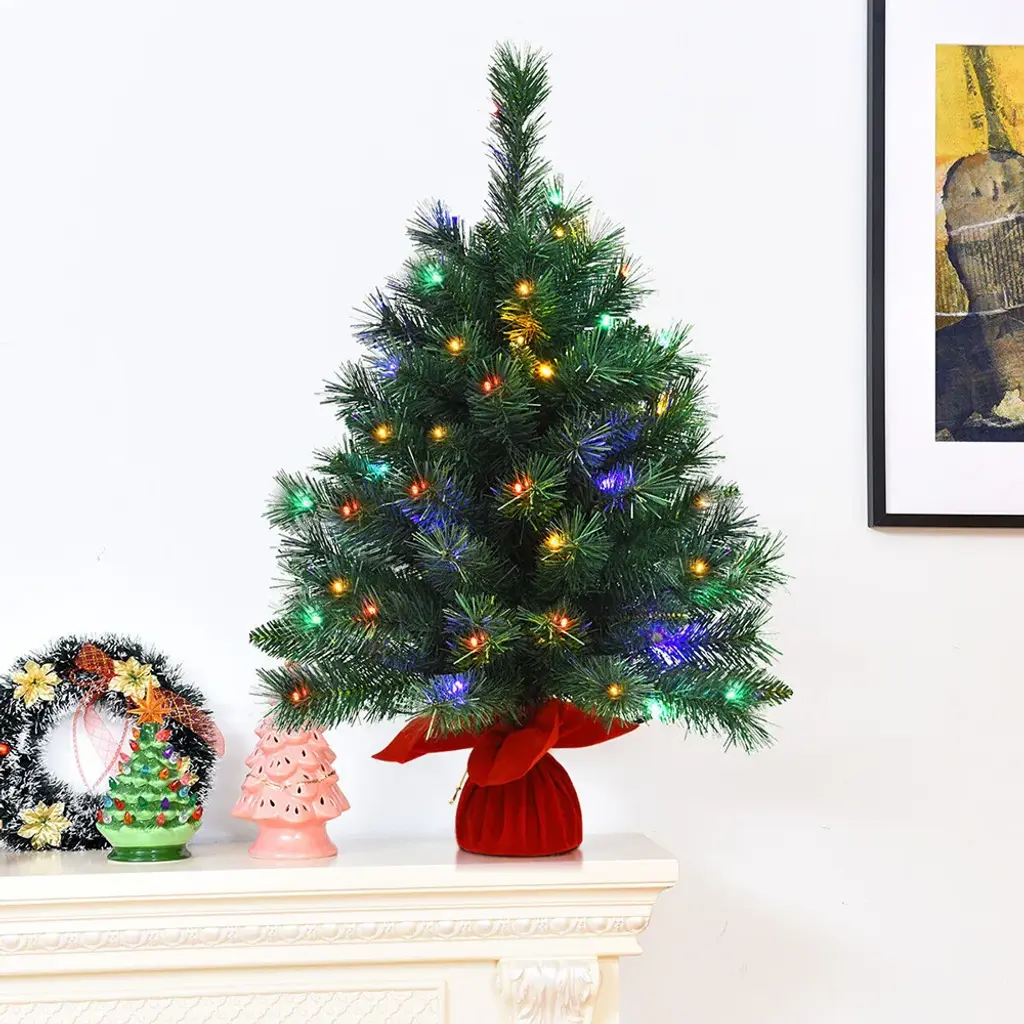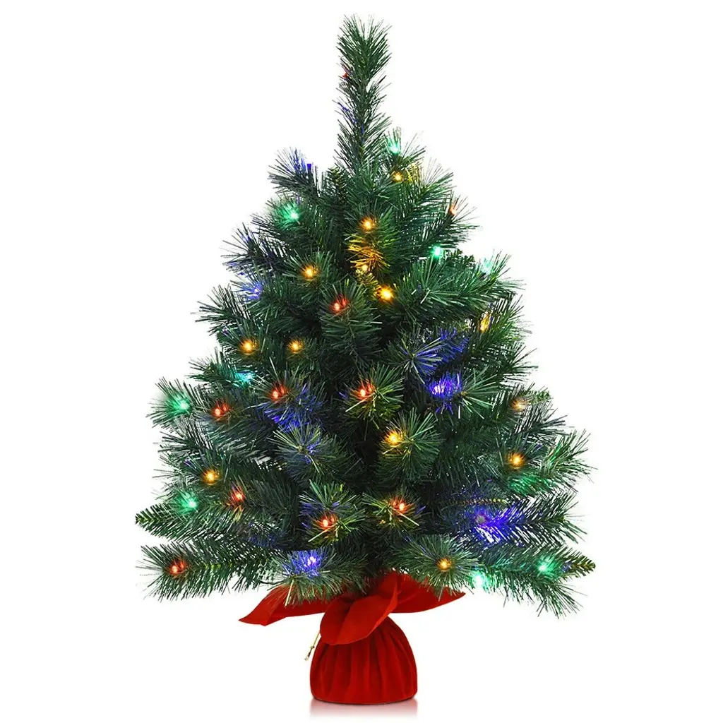 ▌ PRODUCT DETAILS: Description: This is our brand new 26 inch pre-lit tabletop Christmas tree which is made of eco-friendly and non-flammable PVC material to provide you with long-term quality service. Designed with 35 LED lights, which shows 4 different colors, the Christmas tree offers 8 flash modes to bringing colorful shine to your home. Sturdy cement base wrapped in red cloth provides strong support for the tree to keep it in balance, preventing it from tipping over. Cordless design makes it convenient for you to carry and store the tabletop tree. Whether for your home, courtyard, or for commercial places like shops, the pre-lit Christmas tree is the perfect decoration to add multiple fun and festive holiday fullness! Features: 35 LED lights for 4 different color light: red, yellow, green, blue Designed with 8 flash modes for colorful lighting effects,including combination, in wave, sequential, slo glo, chasing/flash, slow fade, twinkle/flash, steady on Crafted with 74 branch tips for leafy and realistic appearance Non-flammable and eco-friendly PVC material, not easily deformed Battery power supply, convenient for movement Cement base wrapped in red cloth offers large stability Compact size & light weight for easy movement Eye-catching addition for homes, office, shops and other business places Match any style of room, add a rich Christmas atmosphere to you UL certified for safer use Specifications: Color: as the picture shows Main Material: PVC, cement, cloth Overall Dimensions: Φ16"×26"H Number of Tips: 74 tips Number of Lights: 35 Net weight: about 2.5 lbs Battery : 3 AA (not included) Package Includes: 1×Pre-lit tabletop Christmas tree