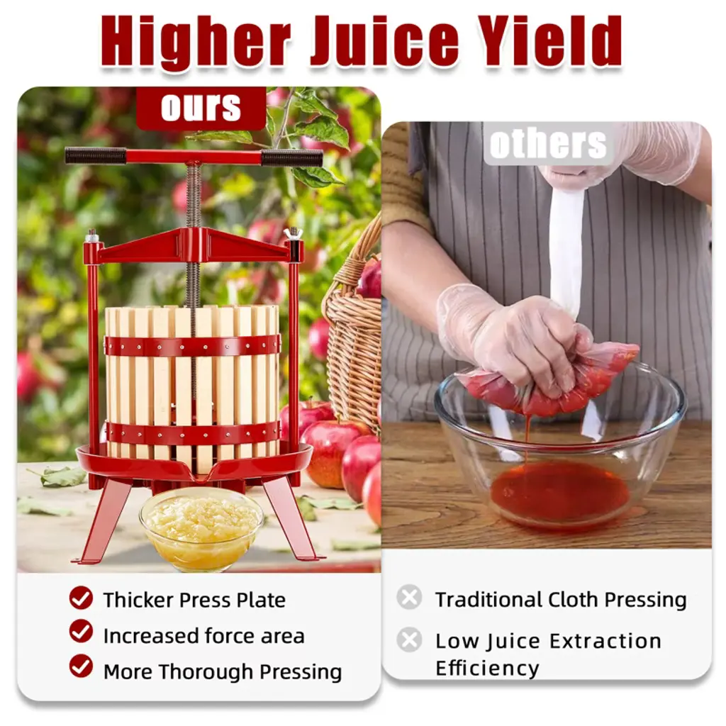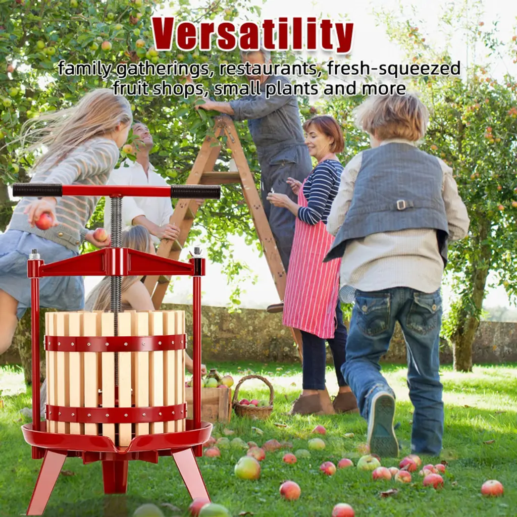 3.17 Gal Wood Steel Fruit and Wine Press, Manual Fruit Wine Press With T-Handle, Stable Triangular Structure, Wine Making Press for Outdoor, Kitchen