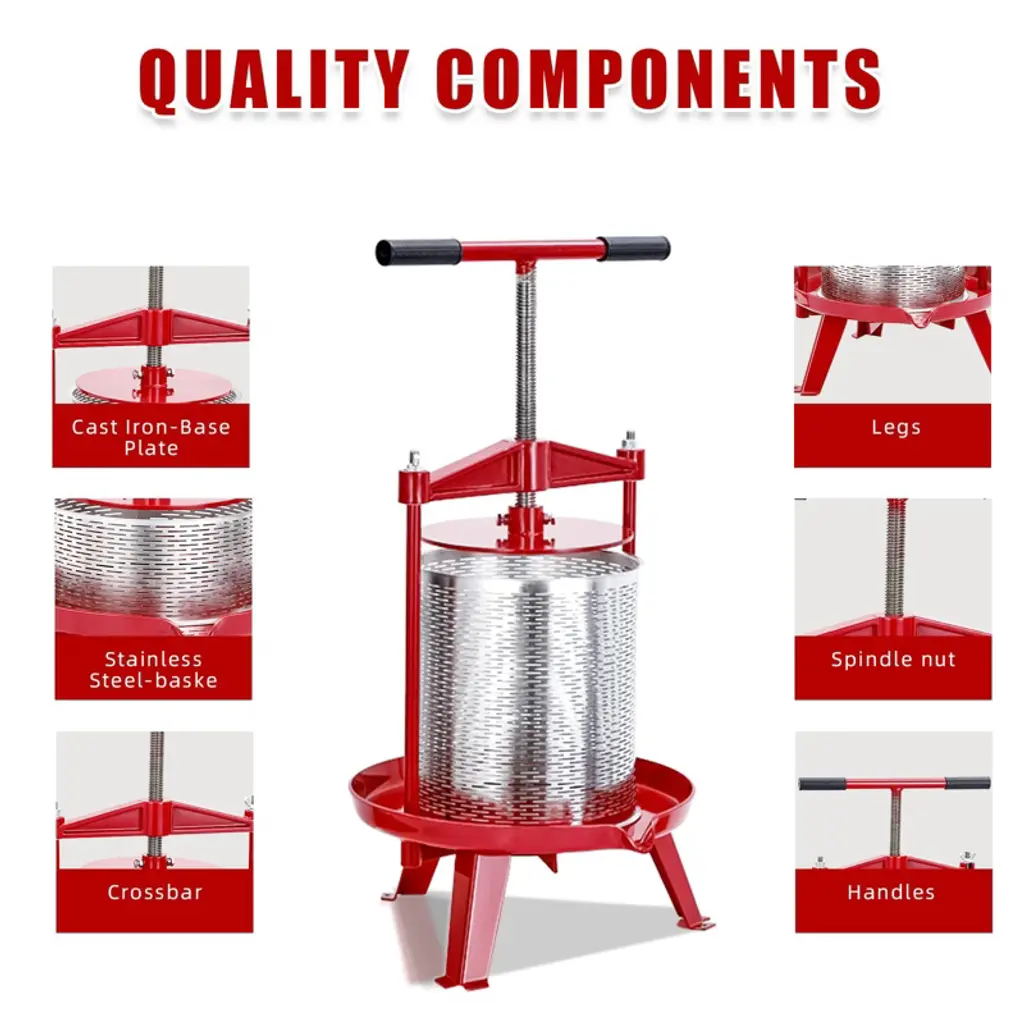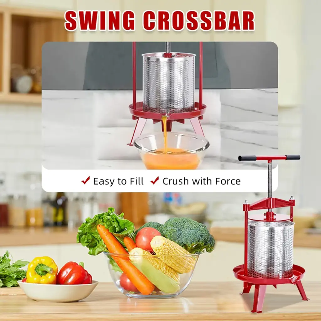 3.69 Gal Fruit Wine Press, Manual Fruit and Wine Press With T-Handle, Stainless Steel, Stable Triangular Structure, Wine Making Press for Outdoor, Kitchen