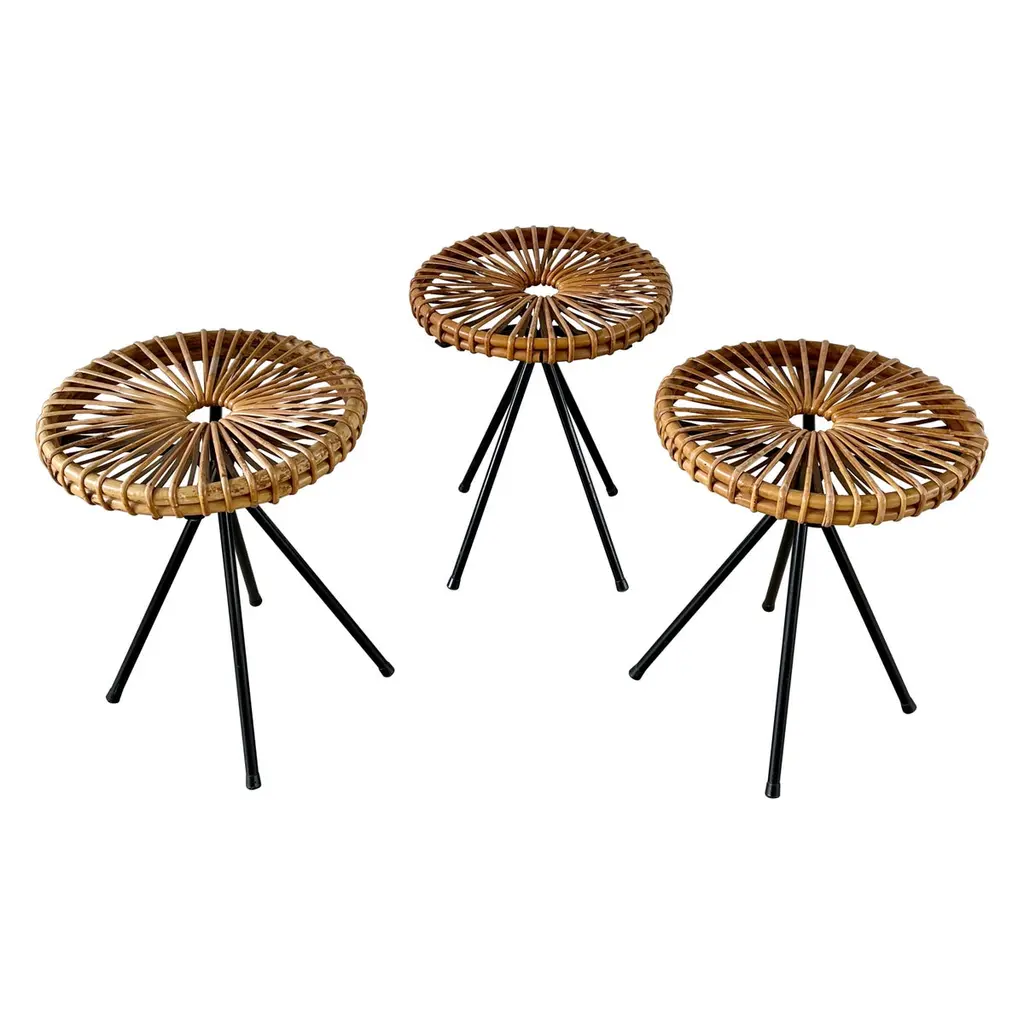 3 beautiful bamboo tables made in highest quality and manufactured in Italy. Largest: 47 inches wide, 32 inches deep, 20 inches highMedium size: 31.5 inches wide, 24 inches deep, 16.5 inches highSmall size: 23.6 wide, 16 inches deep, 14 inches high.In the manner of Gabriella Crespi.Same era as: Charlotte Perriand, Jean Prouve, Pierre Pauline, Serge Mouille, Jacques Adnet, Jean Royere, Roger Tallon, Michel Buffet, Pierre Guariche, Le Corbusier, Gio Ponti, Franco Albini, Carlo Mollino, Guglielmo Ulrich, Jo Colombo, Ettore Sottsass, Marco Zanuso, Osvaldo Borsani, Ico Parisi, Charles and Ray Eames, George Nelson, Eero Saarinen, Florence Knoll, Isamu Noguchi, Harry Bertoia, Paul Mccobb, Edward Wormley, Vladimir Kagan, Milo Baughman