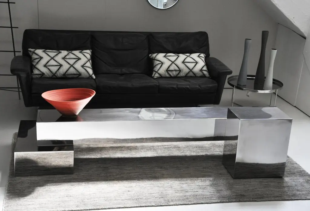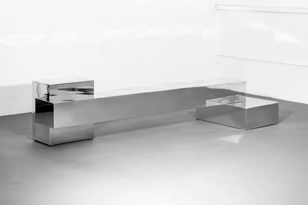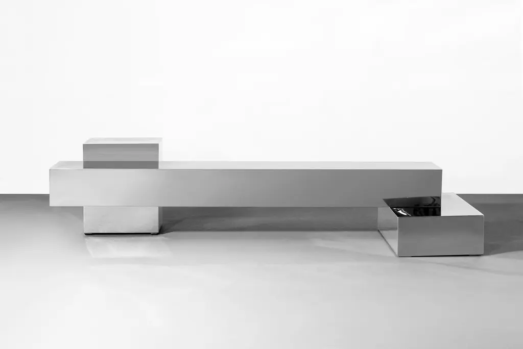 3 Blocks Table by Pol Quadens Limited Edition Of 8+4 Pieces.Dimensions: D 80 x W 200 x H 45 cm.Materials: Polished stainless steel.Pol Quadens was born in Brussels. His father was active in the fields of composites the metal industry, and the world of materials, therefore, surrounded Pol since his early childhood. After his artistic studies, he starts restoring vintage cars. This experience has allowed him to gain strong practical skills and a deep knowledge of all materials.In 1987, he made his first creations and production of objects. His sensitivity and passion for the arts led him to create functional artworks. His CD shelf has sold more than 100,000 pieces and has become iconic in its category.