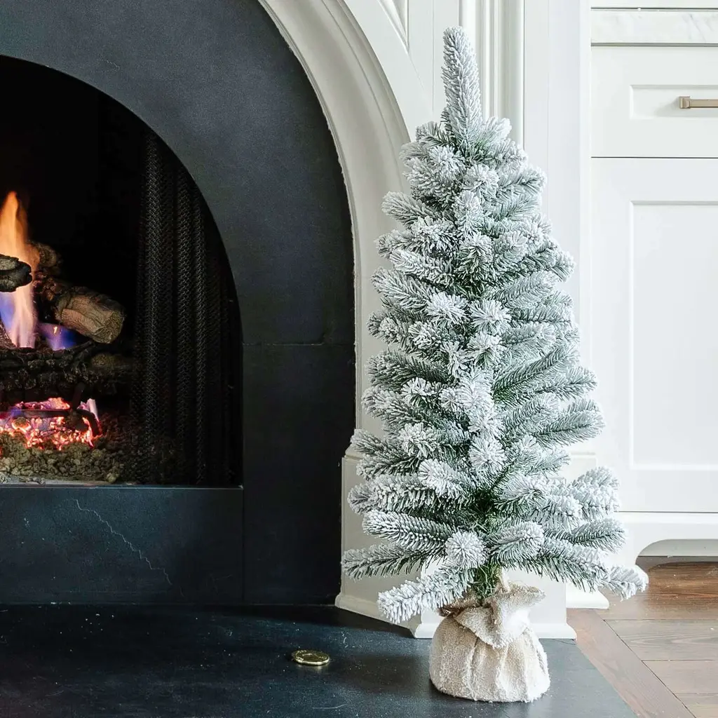Just admit it, we all know why you're here. You might have seen it at a friend's place, or perhaps your cousin won't quit it with how stunning theirs looks, or maybe you're checking in to see if all that Instagram hype is real. Well, without further ado, we present the 3' King Flock mini tree. With a natural-colored burlap base, the 3' King Flock tree is a scaled-down version of the king flock without compromising on the quality or details of the tree. The King Flock Christmas tree is one of our premier signature trees. It features state of the art design with a blend of realistic tips (PE) and classic tips (PVC) resulting in a grand and beautiful hallmark Christmas tree. With heavily flocked tips, you can enjoy the look of freshly fallen snow adorning each branch of your tree. So let it snow this holiday season while you sip eggnog, and marvel at this wonderland masterpiece.