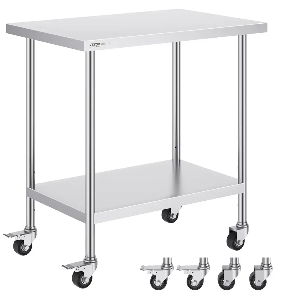 30 X 48in Nsf Commercial Stainless Steel Prep And Work Table W Wheels - 30" X 48" - Silver