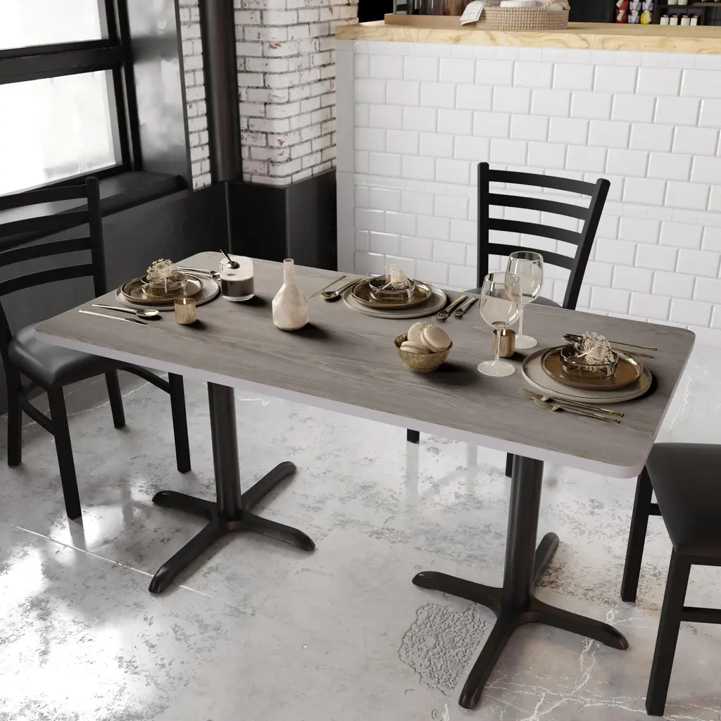 Complete your restaurant, break room or cafeteria with this reversible table top.The reversible laminate top features two different laminate finishes. Choose your color of choice and bolt to the compatible sized base. Surface is heat, scratch and moisture resistant. Use a mild detergent and water, dry clean to keep your tables spotless.This table top is designed for commercial use so you will be assured it will withstand the daily rigors in the hospitality industry.