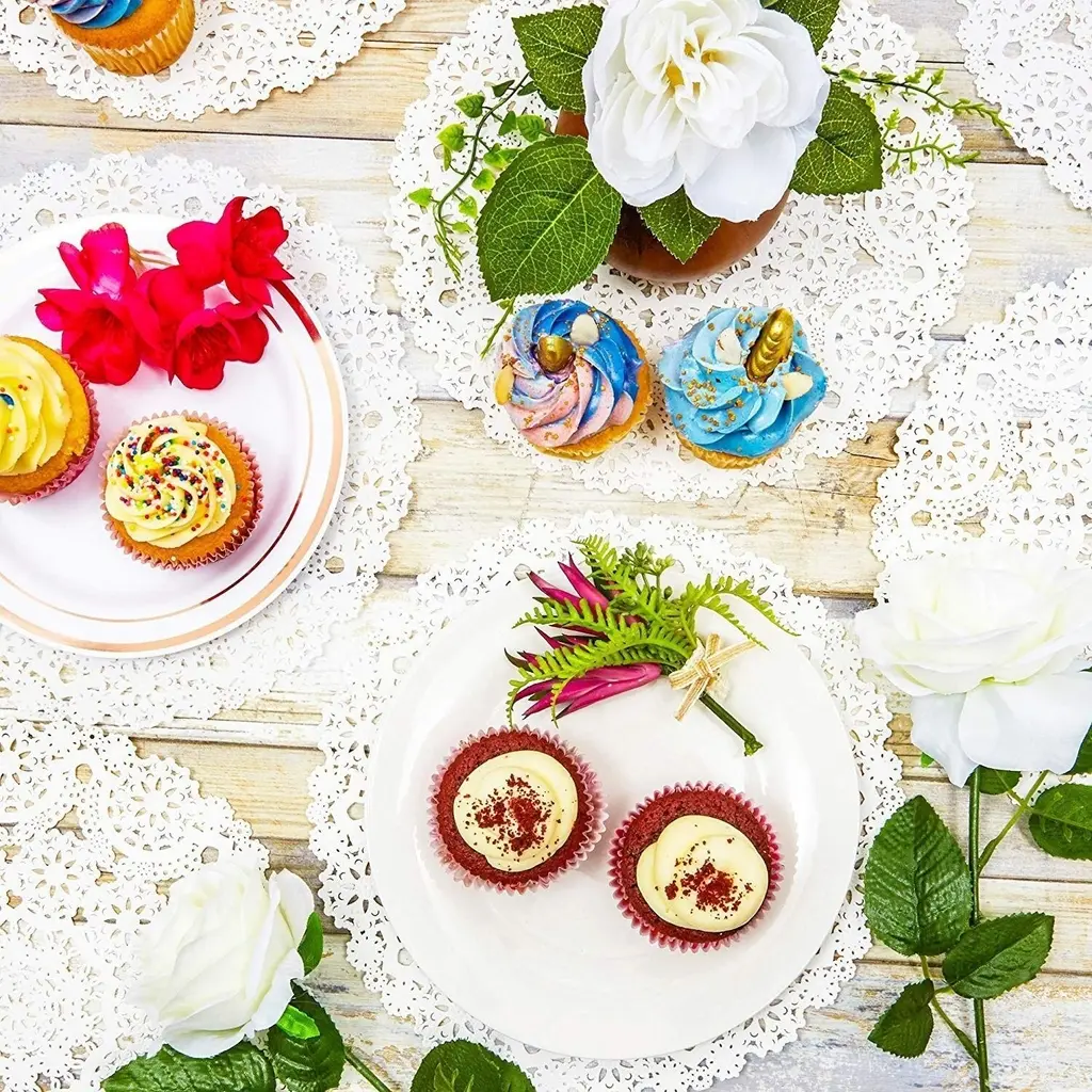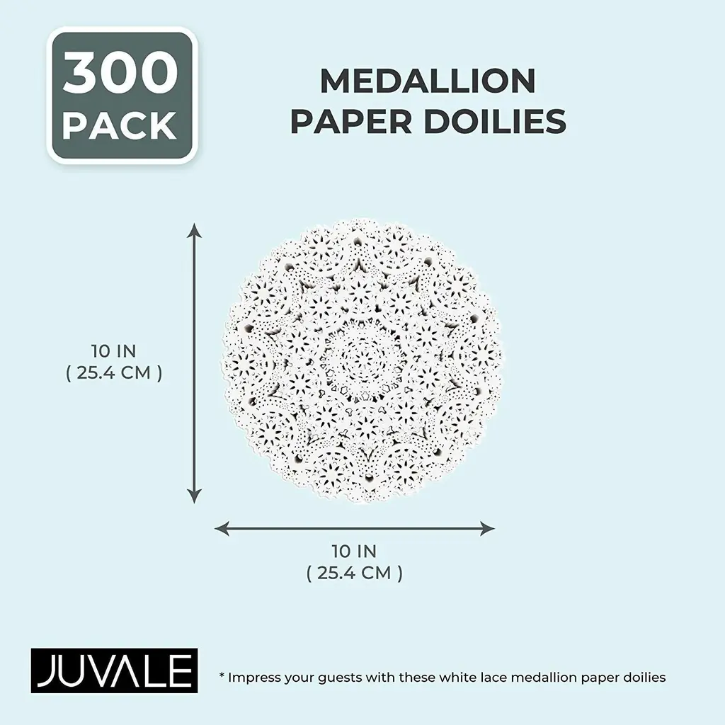 300pcs Medallion White Round 10" Paper Doilies Lace For Art Craft Table Decor - White