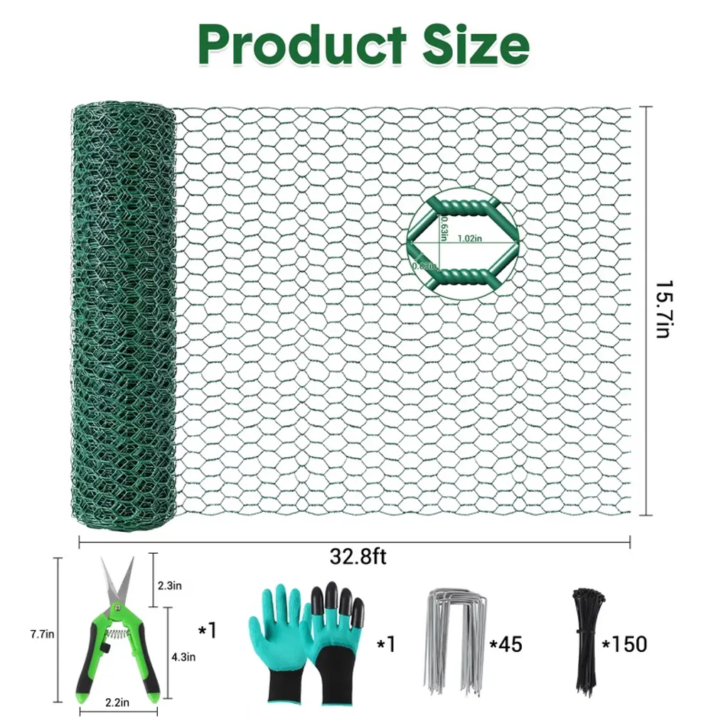 Protect your garden investment with our Multipurpose Plant Protection Kit. Designed for both novice and expert gardeners, this comprehensive set provides a simple and effective solution to keep pests at bay.The cornerstone of the kit is a large 40cm tall by 10m long roll of vinyl-coated steel wire mesh. This adaptable material can be easily cut and shaped to create custom-sized cages for tender seedlings, valuable shrubs, strawberry patches, or raised vegetable beds. Beyond plant protection, its utility extends to small-scale farming uses, such as mending chicken runs or creating temporary enclosures.We prioritize durability. The thick vinyl coating on the wire mesh prevents rust and corrosion, ensuring the protection lasts for seasons to come. The included accessories are equally robust—the nylon zip ties are strong and weatherproof, and the metal U-stakes provide a firm hold in the soil.Important Safety Note: The cut ends of the wire mesh can be sharp. For your safety, we strongly recommend wearing the included cut-resistant gloves during the entire installation process.What You Get:1 Roll of Vinyl Coated Wire Mesh (40cm x 10m / 1.3ft x 32.8ft)150 Nylon Zip Ties15 U-Shaped Garden Stakes1 Pair of Cut-Resistant Gloves (Right-Handed)1 Pair of PliersInvest in peace of mind for your garden. Order now and build a fortress for your plants!