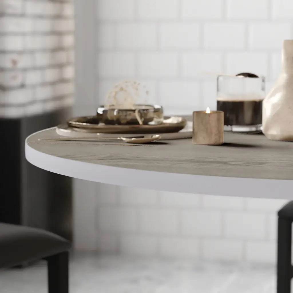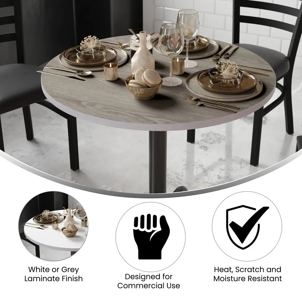 Complete your restaurant, break room or cafeteria with this reversible table top.The reversible laminate top features two different laminate finishes. Choose your color of choice and bolt to the compatible sized base. Surface is heat, scratch and moisture resistant. Use a mild detergent and water, dry clean to keep your tables spotless.This table top is designed for commercial use so you will be assured it will withstand the daily rigors in the hospitality industry.