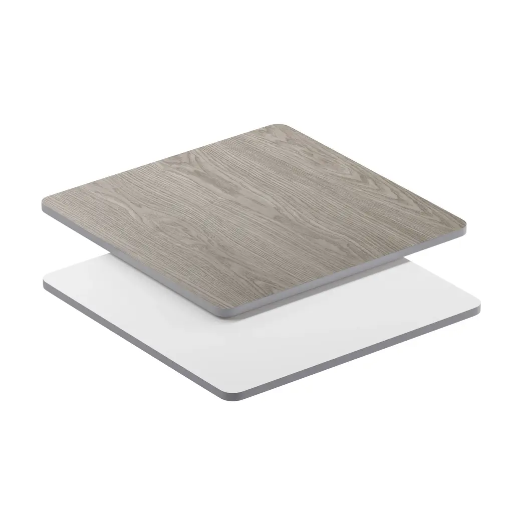 Complete your restaurant, break room or cafeteria with this reversible table top.The reversible laminate top features two different laminate finishes. Choose your color of choice and bolt to the compatible sized base. Surface is heat, scratch and moisture resistant. Use a mild detergent and water, dry clean to keep your tables spotless.This table top is designed for commercial use so you will be assured it will withstand the daily rigors in the hospitality industry.