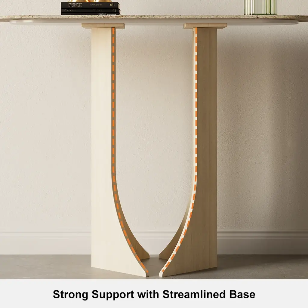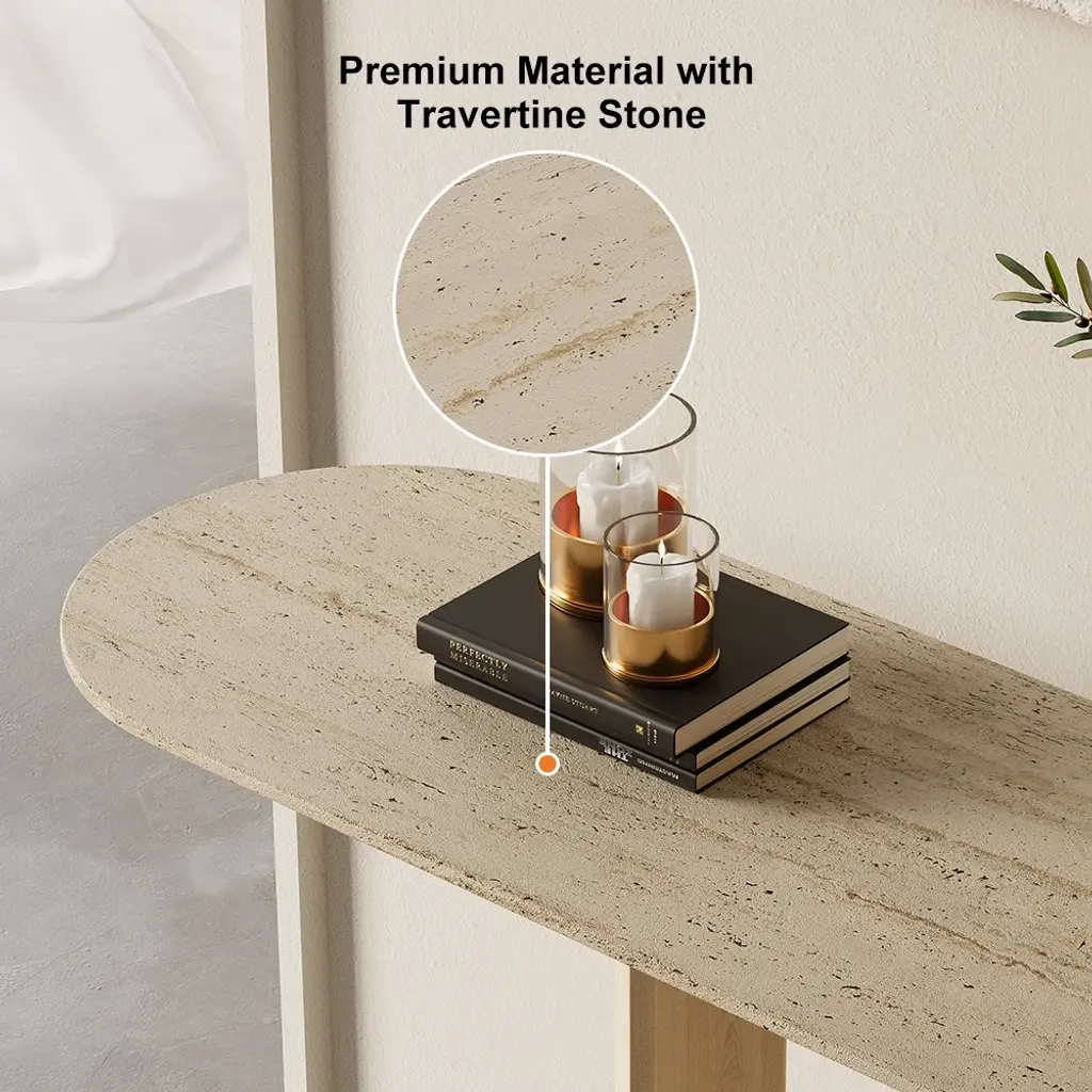 39.4" Oval Travertine Stone Console Table Modern Entryway Table With Abstract Base