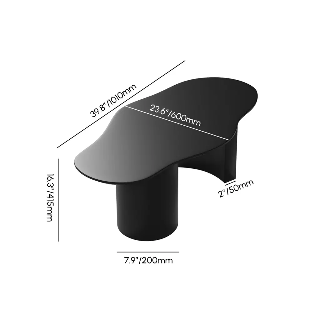 39.8" Abstract Funky Japandi Wood Coffee Table Cloud Shaped In Black
