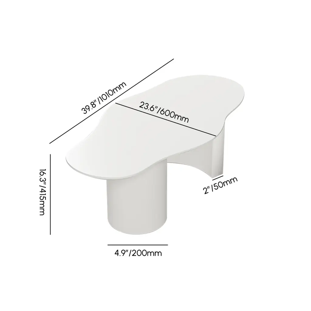 39.8" Japandi Funky Wood Coffee Table Abstract Cloud Shaped In White