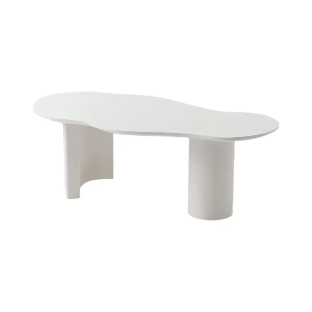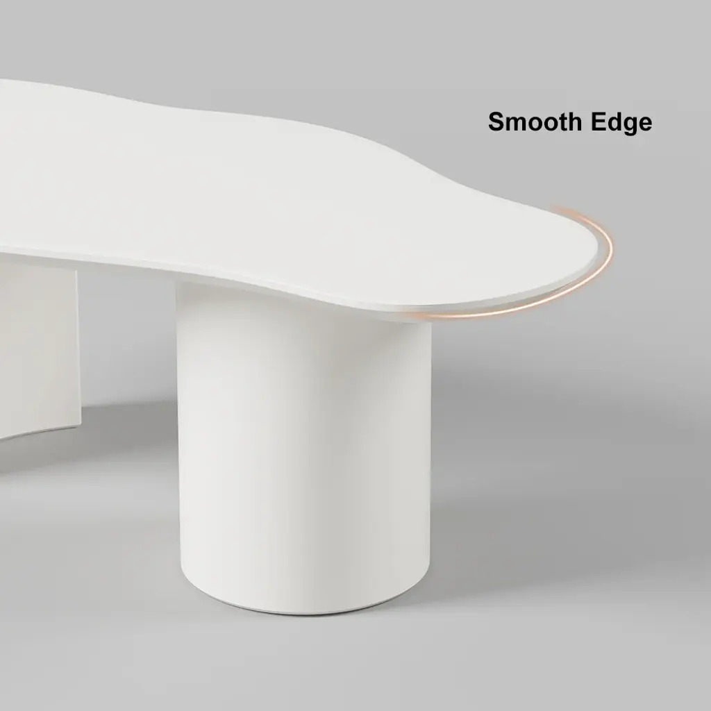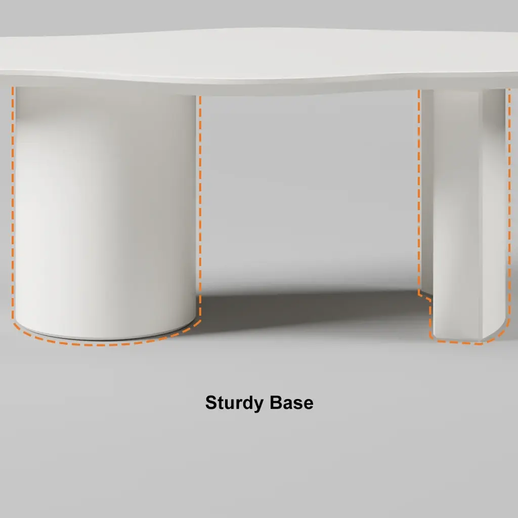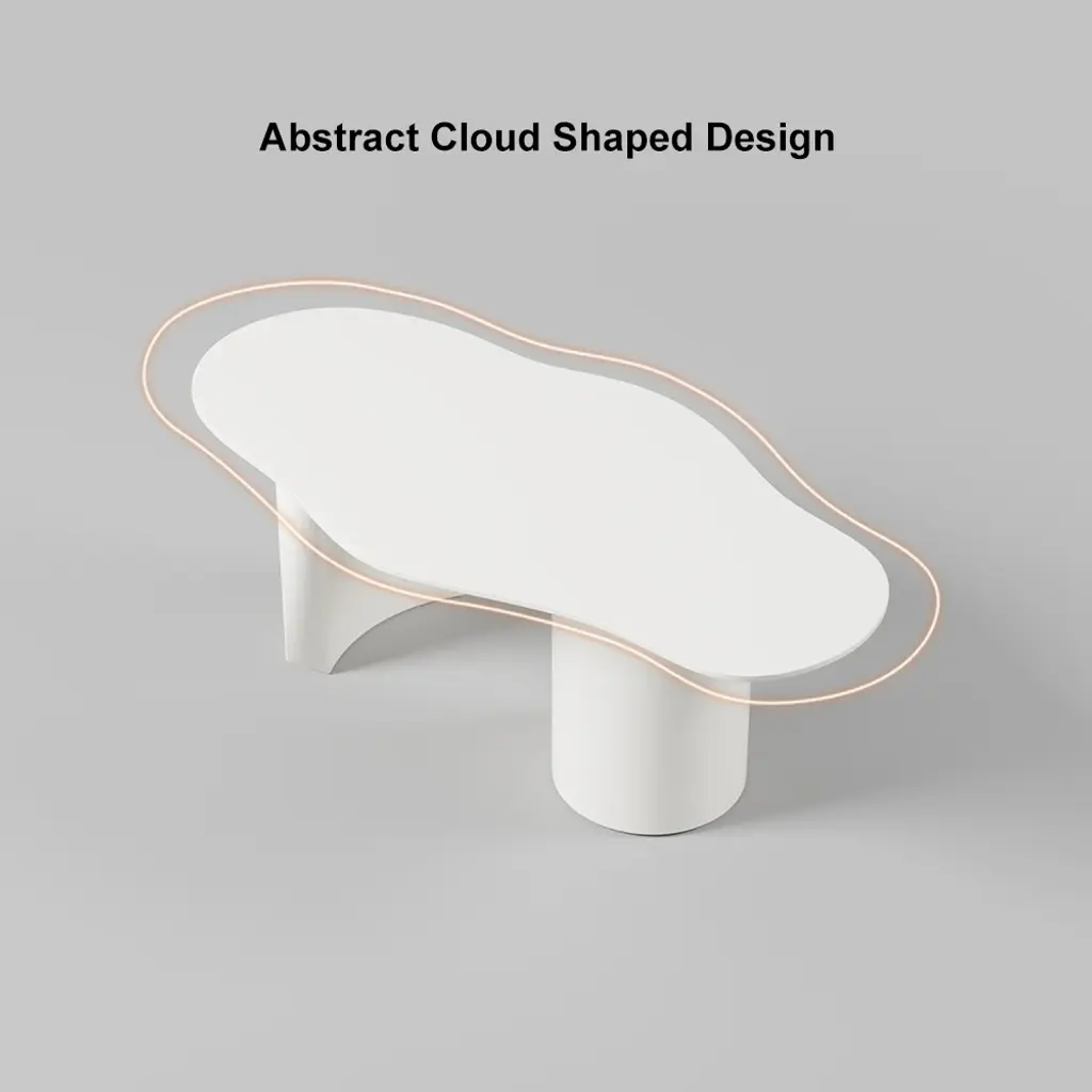 This Japandi Coffee Table with its color and innovative cloud shape is a fantastic addition to add a japandi ambiance to your living room. The table features an MDF tabletop and a sturdy double pedestal. The tabletop provide ample room for your magazines, books, and even your laptop. The white top is easy to clean.