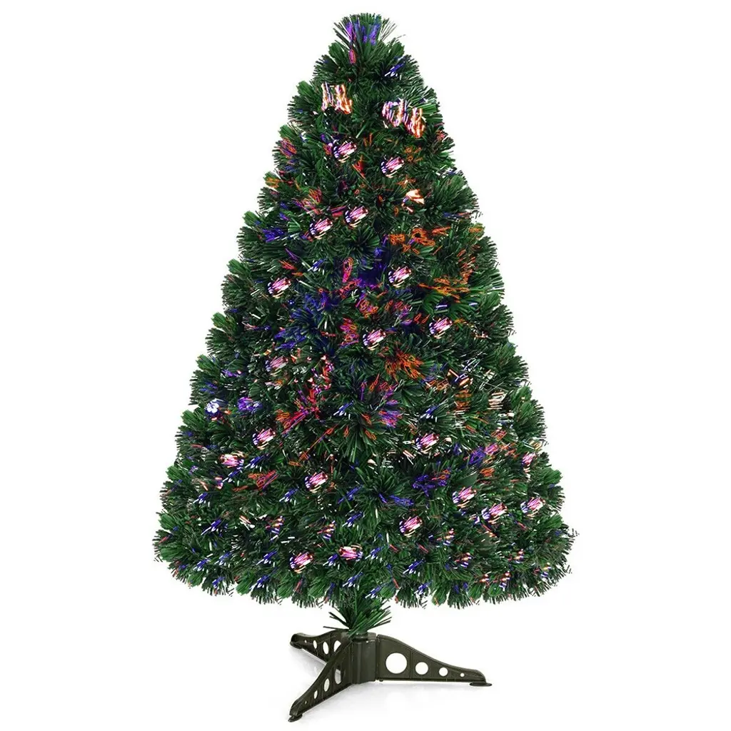 ▌ PRODUCT DETAILS: Description: Our brand new 3Ft Fiber Optic Artificial Christmas tree is an ideal Christmas trimmings. With pre-installed fiber optic, powered by energy saving LED lights, gleam throughout the tree, will present 7 different colors. Our trees are in great quality, making it your best choice. The tree is made of fade and crush resistant PVC needles, appears fresh-cut. The tips are sculpted to enhance the trees' lifelike appearance. In addition the staggered branches give the tree a fuller profile. High density plastic bases to keep the tree planted in an upright position. Add some festive to your home with this Christmas tree. Don't hesitate to buy it! Warning: Please remove the plastic cap which is useless before installation .If damaged or missing when received , not impact any usage effect. Features: Simple green color and 85 tips design to help emulate a real Christmas tree Pre-installed fiber optic on each branches for no assembly and ease to use Dense PVC needles providing it a fresh cut look that will last all season High density plastic stand provides the tree greater support and can be used for a long time With fiber optic, powered by energy saving LED lights, will present 7 different colors(red, blue, green, purple, yellow, white, warm white) Great for indoor, especial for Christmas decoration, which can be used to decorate offices, apartments, or any room in a house Assembly required for the plastic stand, no assembly required for the tree Specifications: Color: Green Material: PVC/ Plastic/Fiber Optic Overall Dimensions: 1.7' x 3'(Dia x H) Number of Tips: 85 Net weight: 2.5lbs Package Included: 1 x Fiber Optic Christmas tree 1 x plastic Stand 1 x Adapter 1 x Instruction