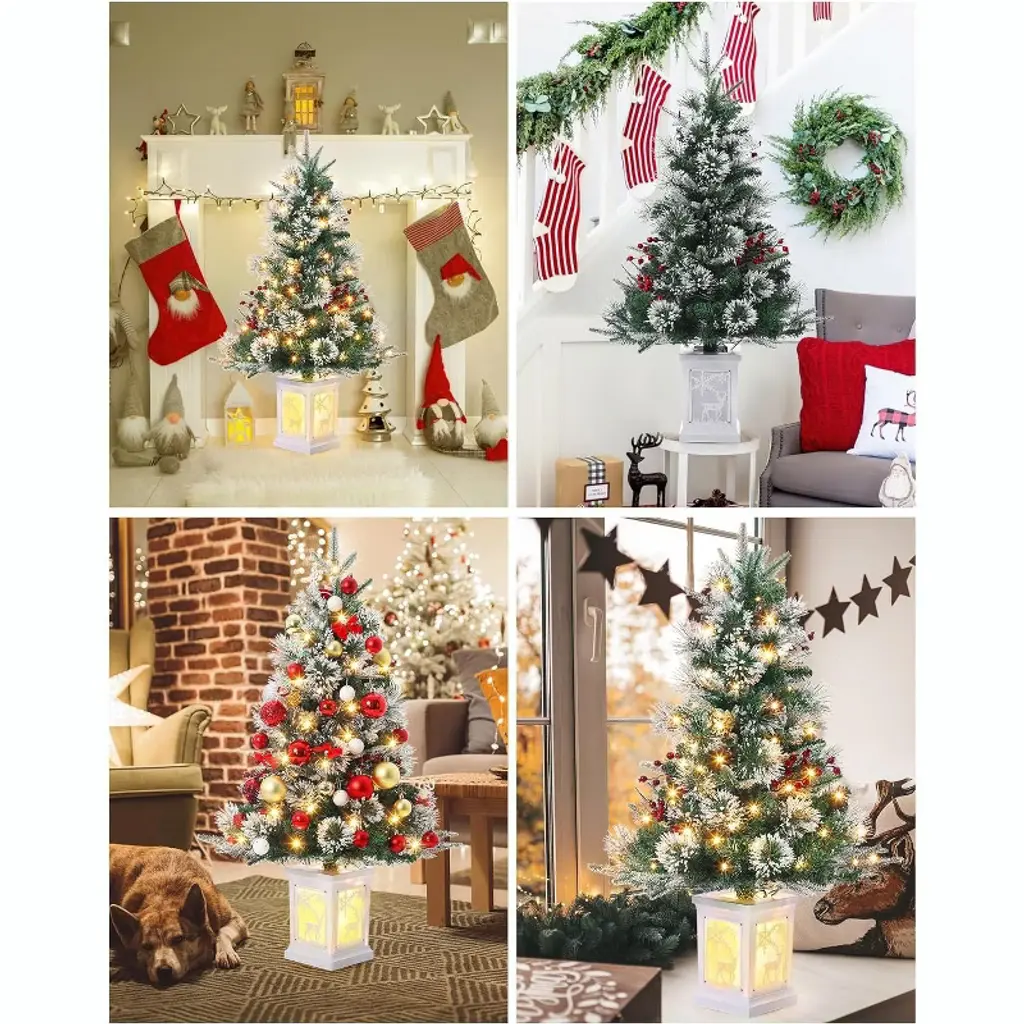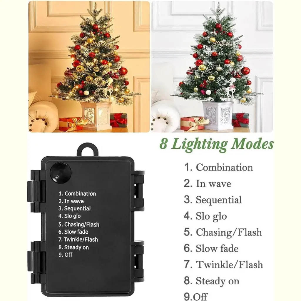 Pre-Lit Tabletop Christmas Tree 3ft, Battery Operated Nordic Spruce Artificial Xmas Tree with 70 LED Lights & Snowflake Base for Home Office DecorProduct DescriptionBring festive charm to any compact space with our 3ft Pre-Lit Tabletop Christmas Tree. Designed to mimic the enchanting beauty of a Nordic spruce, this tree features 121 lifelike PVC/PE branch tips, delicately snow-dusted needles, and subtle red berry accents for a touch of traditional elegance. Pre-lit with 70 warm white LED lights, it emits a soft, inviting glow perfect for creating a cozy holiday atmosphere. The battery-operated design includes a 6-hour on/18-hour off timer and multiple lighting modes (steady, twinkle, slow fade) for effortless customization. Anchored by a decorative snowflake base that provides both stability and additional illumination, this tree is ideal for desks, mantels, shelves, and more. With quick setup and easy storage, it¡¯s the perfect solution for apartments, offices, dorms, or any area where space is limited but holiday spirit is abundant.Key Features Authentic Nordic Spruce Design Features 121 realistic PVC/PE branch tips with snow-dusted needles and red berry accents for a lifelike winter appearance. 70 Pre-Lit Warm White LEDs Integrated LED lights provide even, gentle illumination across the tree, enhancing ornaments and decor without overwhelming small spaces. Battery-Operated with Timer Cordless design powered by batteries (not included) for flexible placement. Includes a 6-hour on/18-hour off timer and multiple lighting modes (steady, twinkle, slow fade). Decorative Snowflake Base The lighted base adds a subtle glow while ensuring tip-resistant stability on various surfaces. Made from durable, flame-resistant materials. Quick Setup & Storage Hinged branches fluff open easily in 20¨C30 minutes and fold down compactly for storage. Reusable and low-maintenance (no watering or shedding). Space-Saving Versatility Perfect for tablets, mantels, consoles, kitchens, offices, classrooms, and covered porches. Complements rustic, farmhouse, or modern decor themes. Specifications Brand: TruAIR Color: White Snowflakes Base Material: Polyvinyl Chloride (PVC), Polyethylene (PE) Dimensions: 21"D x 21"W x 36"H Tree Height: 3 Feet Weight: 6.97 Pounds Lights: 70 Warm White LEDs (Battery-Operated) Branch Tips: 121 (PVC/PE) Timer: 6 Hours On / 18 Hours Off Lighting Modes: Steady, Twinkle, Slow Fade Base: Decorative Snowflake Design (Lighted) Use: Indoor / Covered Outdoor (Porches) Occasion: Christmas, Holidays