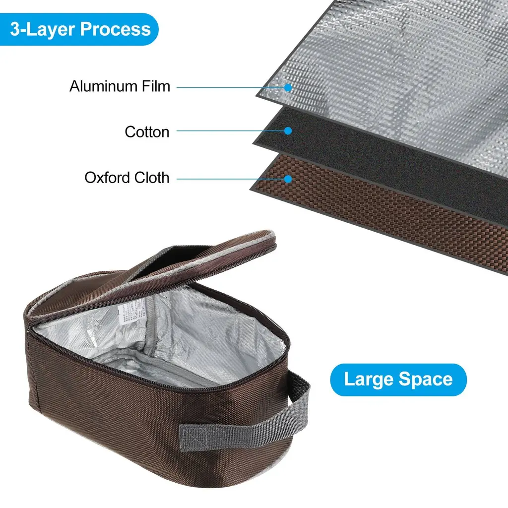Take your lunch on the go with this Portable Waterproof Insulated Food Jar Lunch Tote Bag. Whether you're heading to the office, going on a picnic, or embarking on a camping trip, this lunch bag is perfect for keeping your food fresh and delicious. With its durable and tear-resistant waterproof Oxford cloth construction, you can trust that it will withstand any adventure. The thermal insulation cotton and aluminum film lining help maintain the temperature of your food, whether it needs to stay warm or cold. The convenient zipper closure and handle design make it easy to open, close, and carry. Plus, there are pockets for storing your personal belongings. Pack your favorite foods and drinks into this lunch bag and enjoy a tasty meal wherever you are.Features:Specification:Instruction:NOTE: