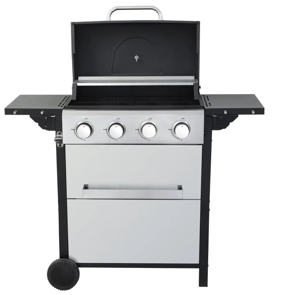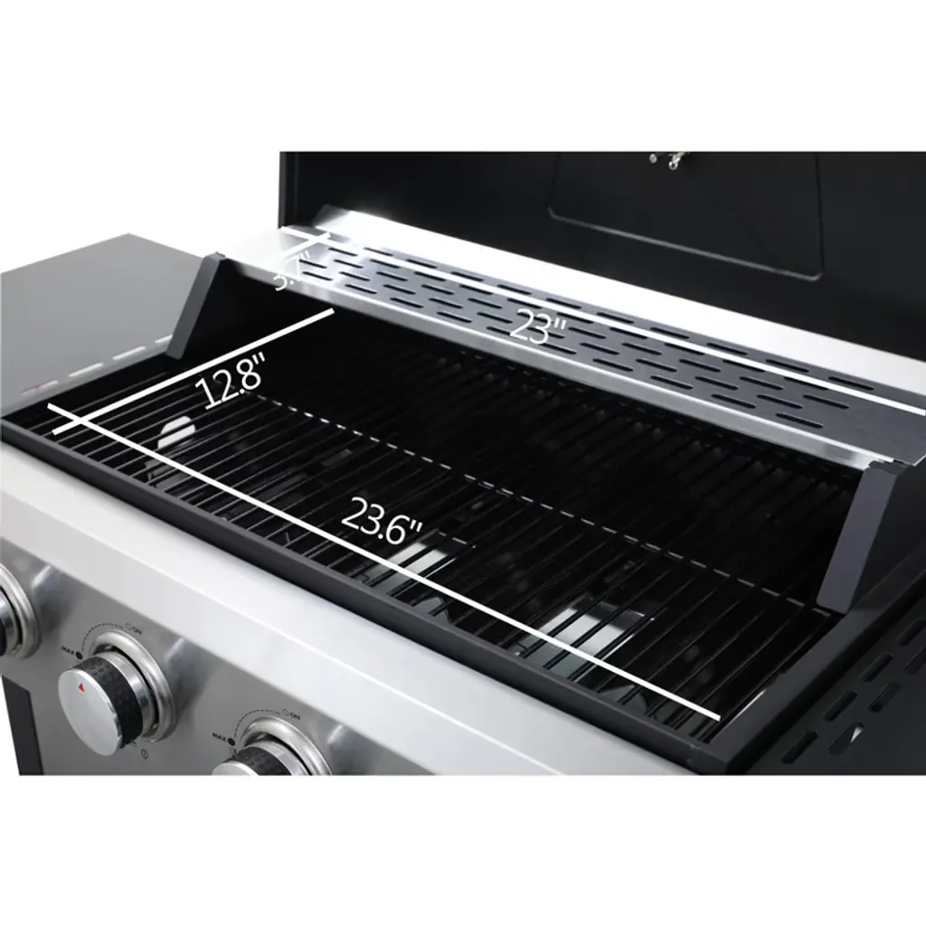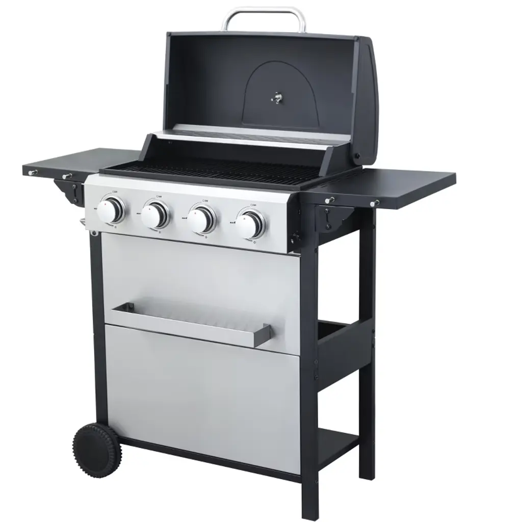 4-burner Propane Gas Bbq Grill, 34200btu Output With Wire Enamel Cooking Grids For Outdoor Barbecue, Foldable Side Table,stainless Steel