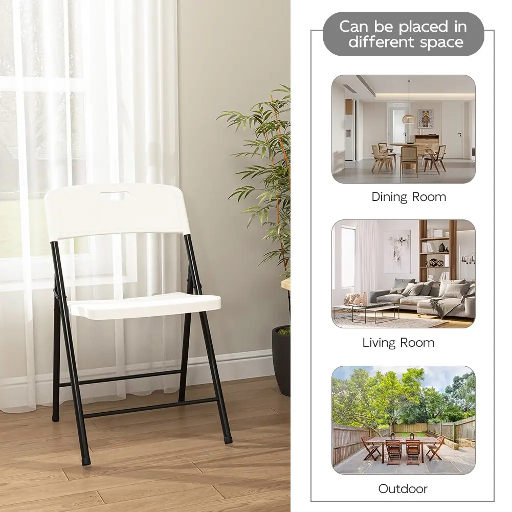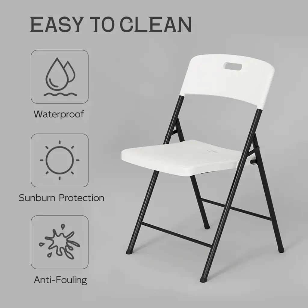 4-Piece Portable Hdpe Plastic Foldable Chair With Steel Frame - White