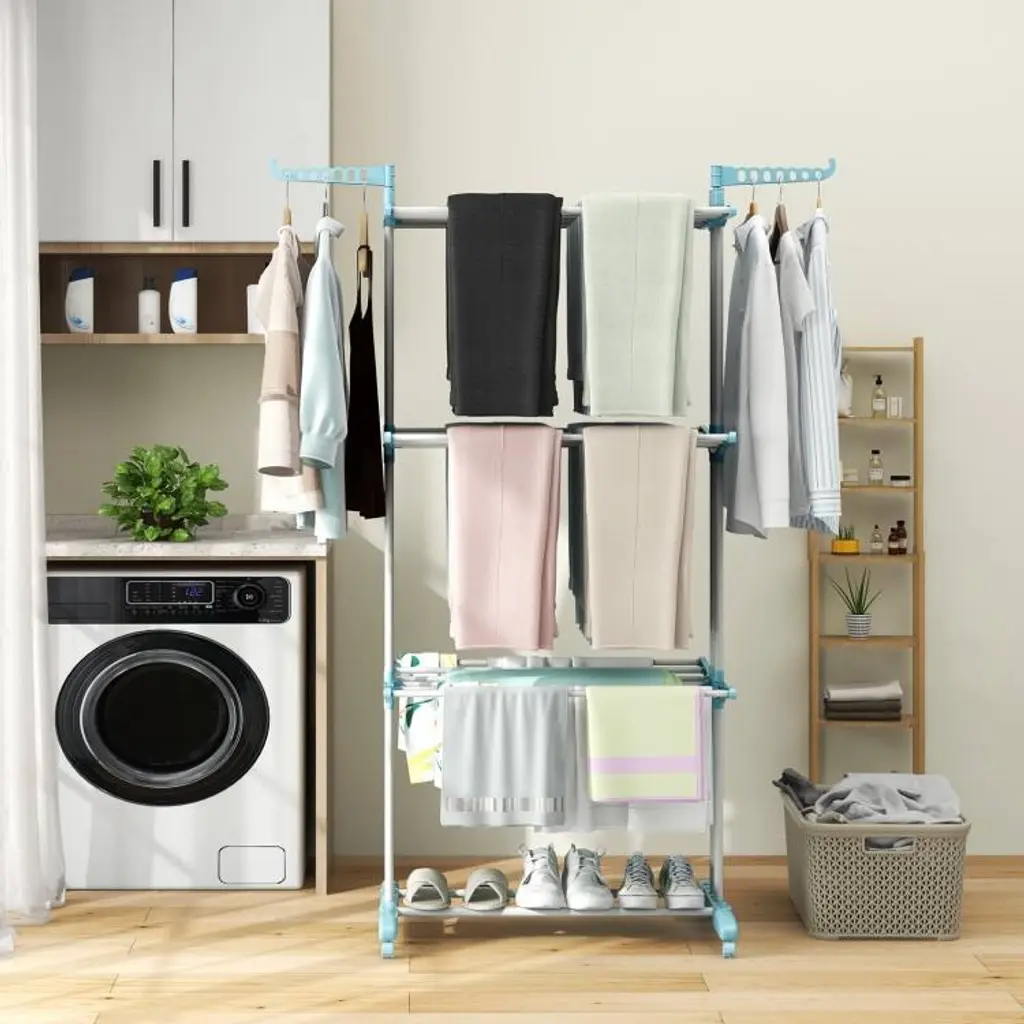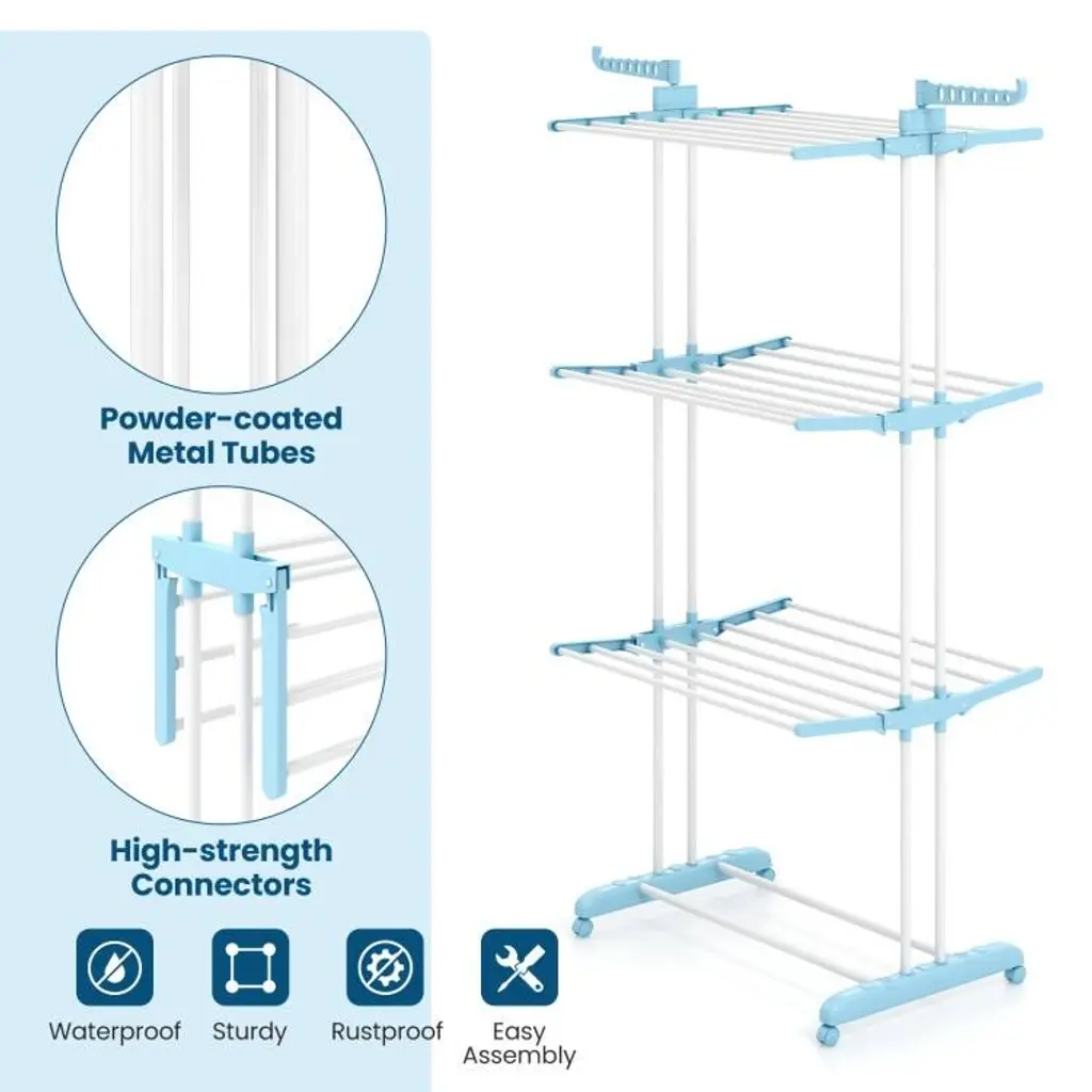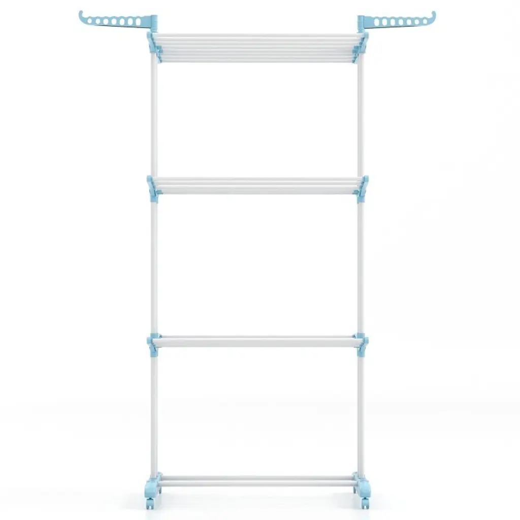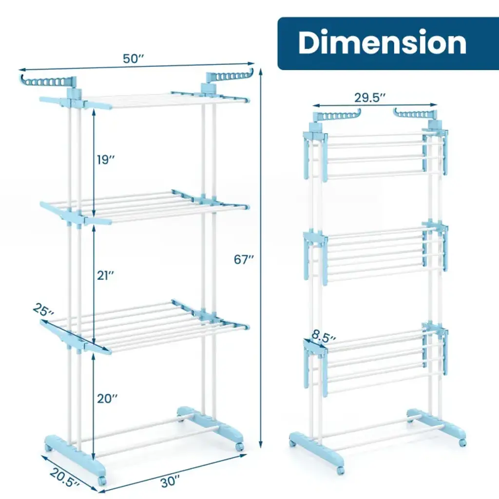 4-Tier Collapsible Clothes Drying Rack With Rotatable Wings - 50" X 20.5" X 67" - Blue
