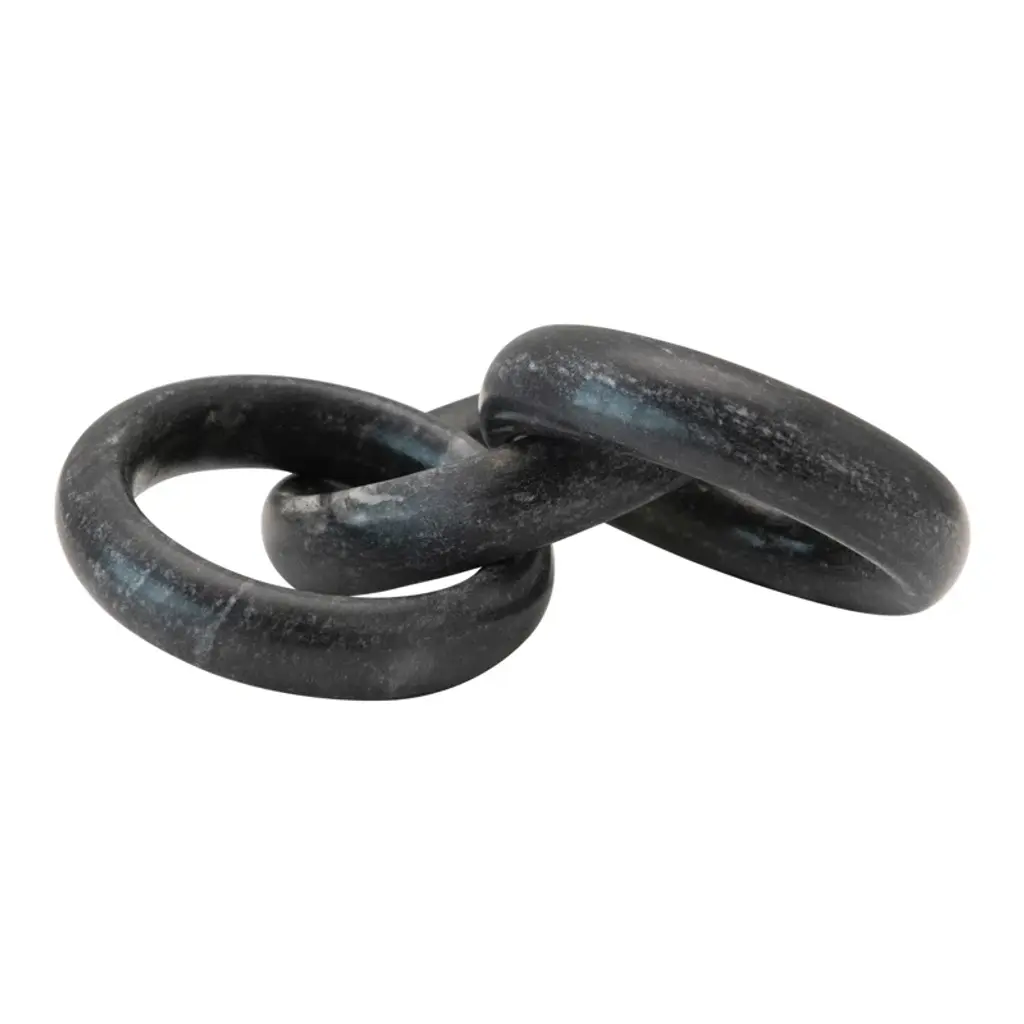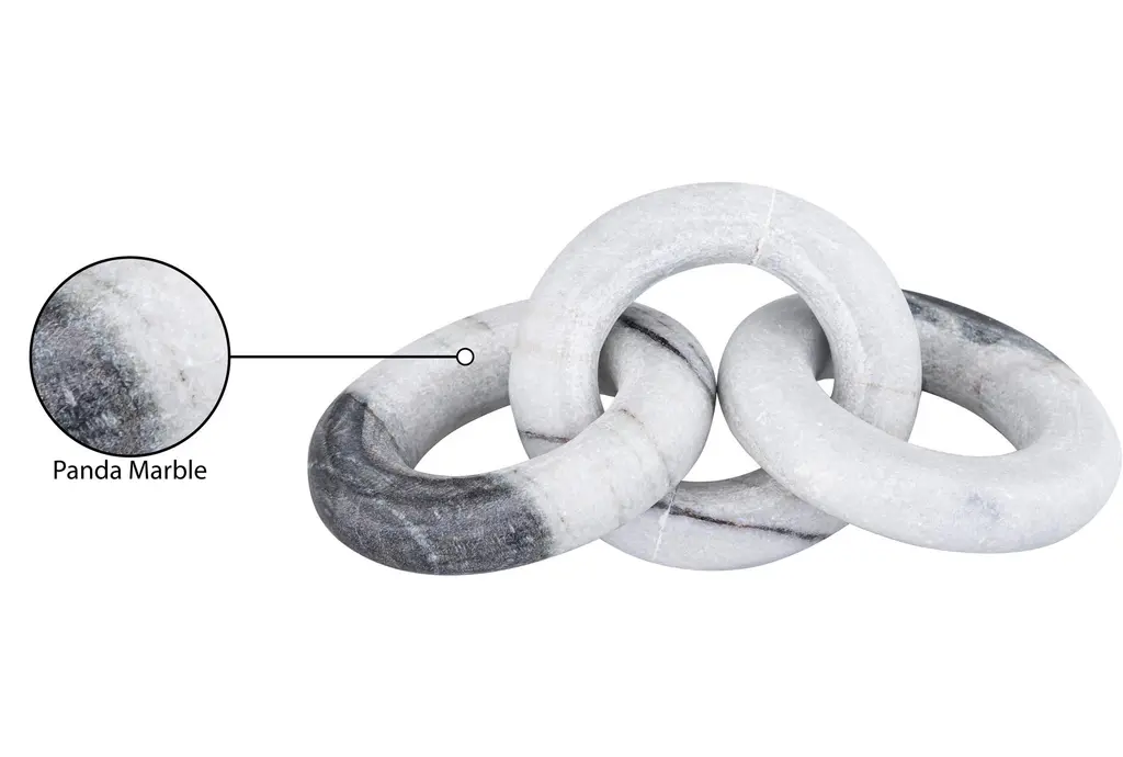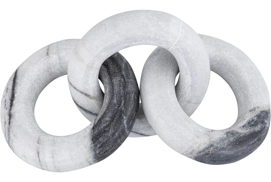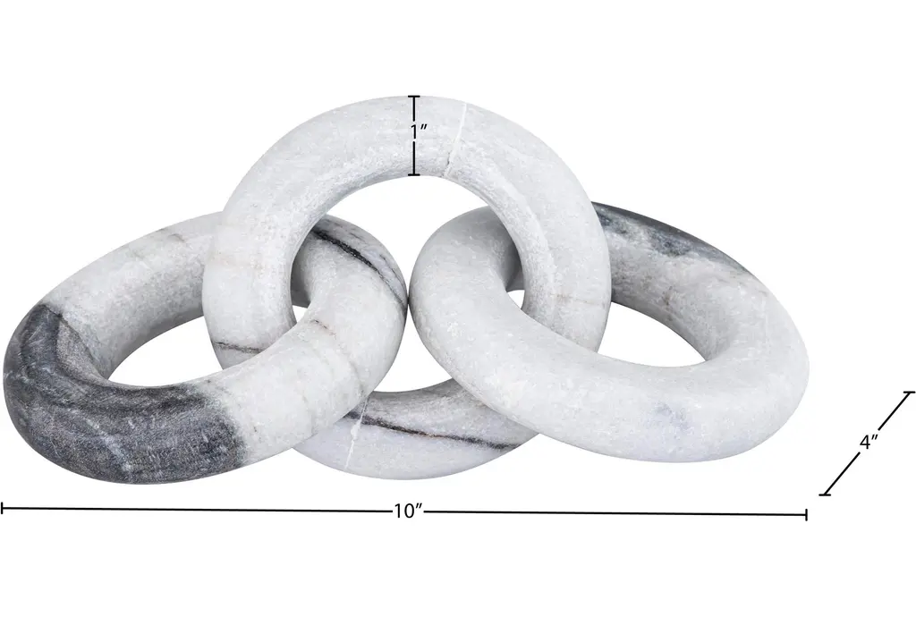 Enhance your home decor with the 4" X 10" Rings Black & White Marble Chain Links Table Decor. This modern piece seamlessly blends black and white marble to create a striking visual effect. It serves as a perfect accent object for any contemporary or neutral-themed space.