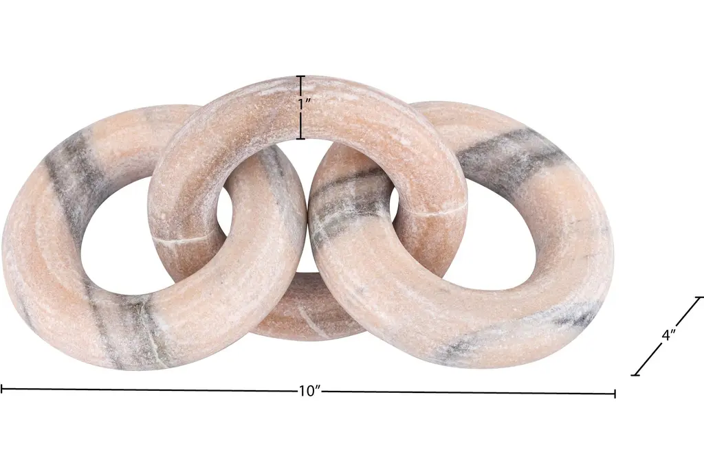 Enhance your modern decor with the 4" X 10" Rings Pink Marble Chain Links Table Decor. This unique piece features a contemporary design that adds a touch of sophistication to any space.