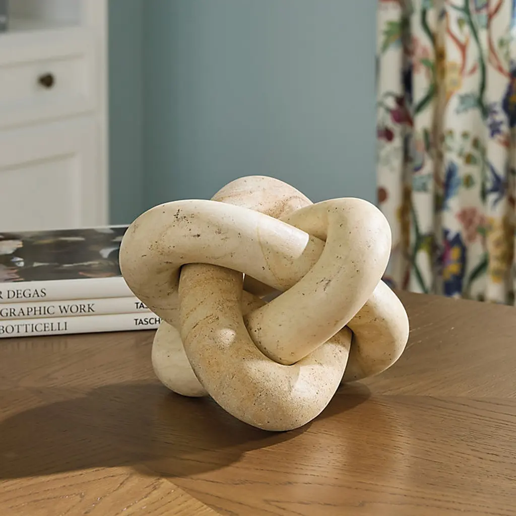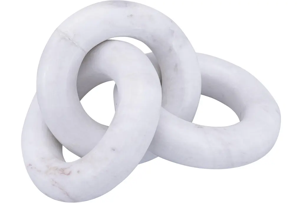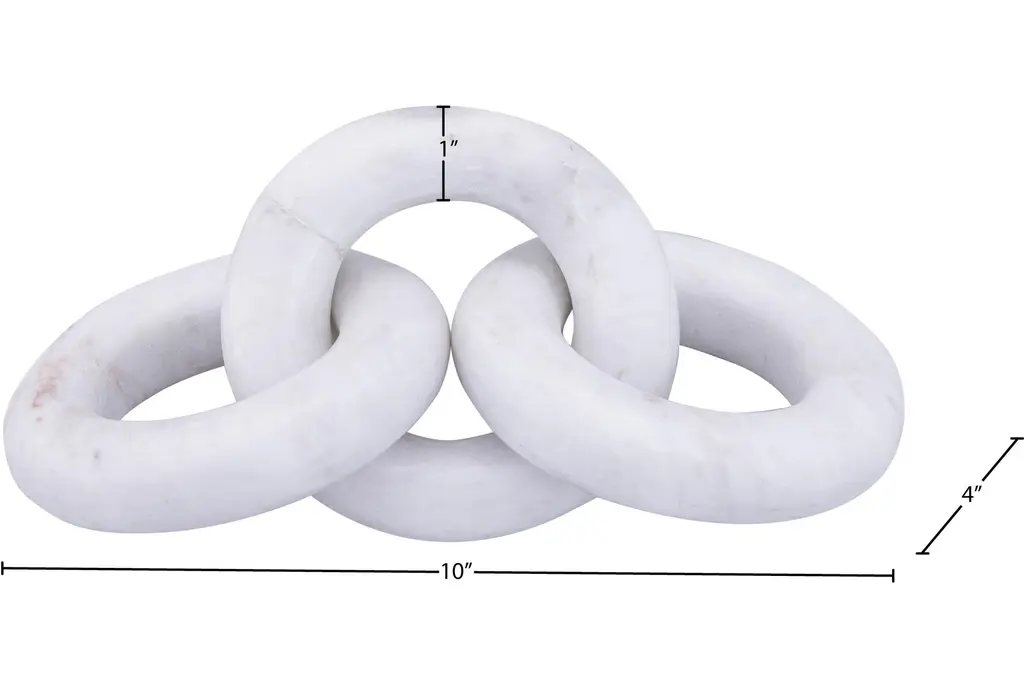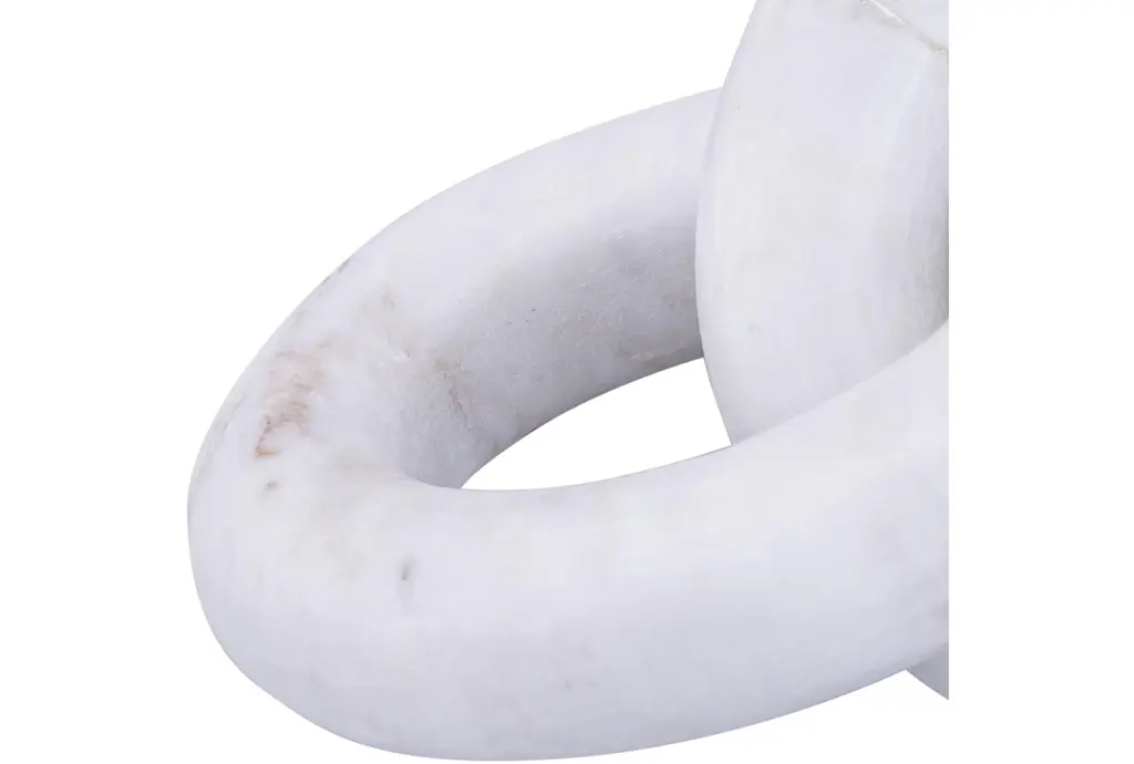 Enhance your decor with the 4" X 10" Rings White Marble Chain Links Table Decor. This modern accent piece features a unique novelty shape that adds a distinctive touch to any space. The soft white color and natural marble material create a light and neutral look that complements various interior styles.